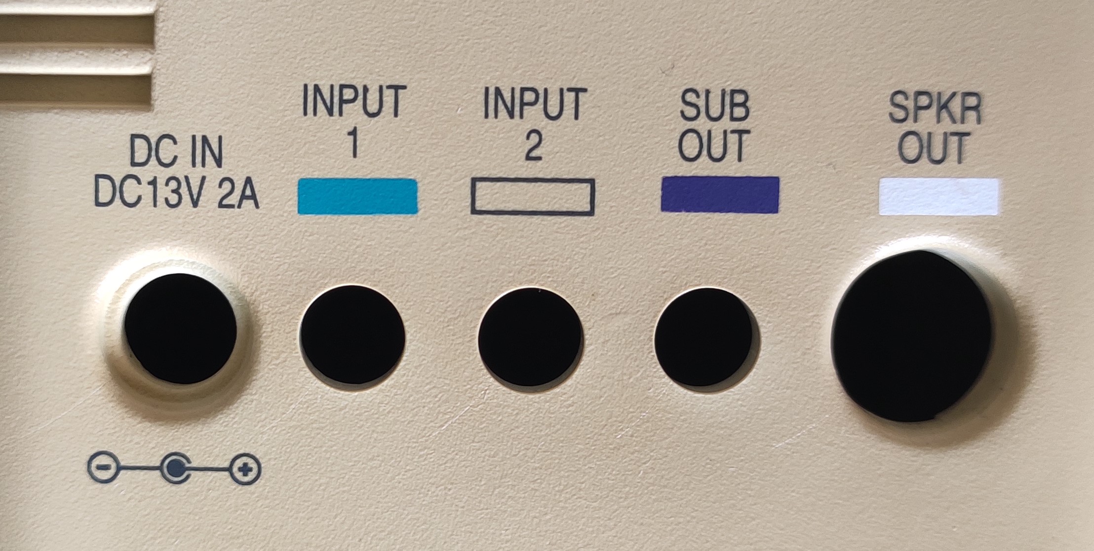 DC12V2A INPUT 2(초록,흰색) OUTPUT1(ACS160 우퍼연결 -보라색-)