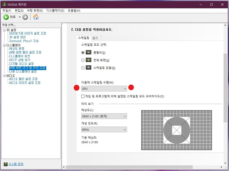 - 3840-2160 해상도에서 60Hz 설정이 안되고 30Hz로만 나옴