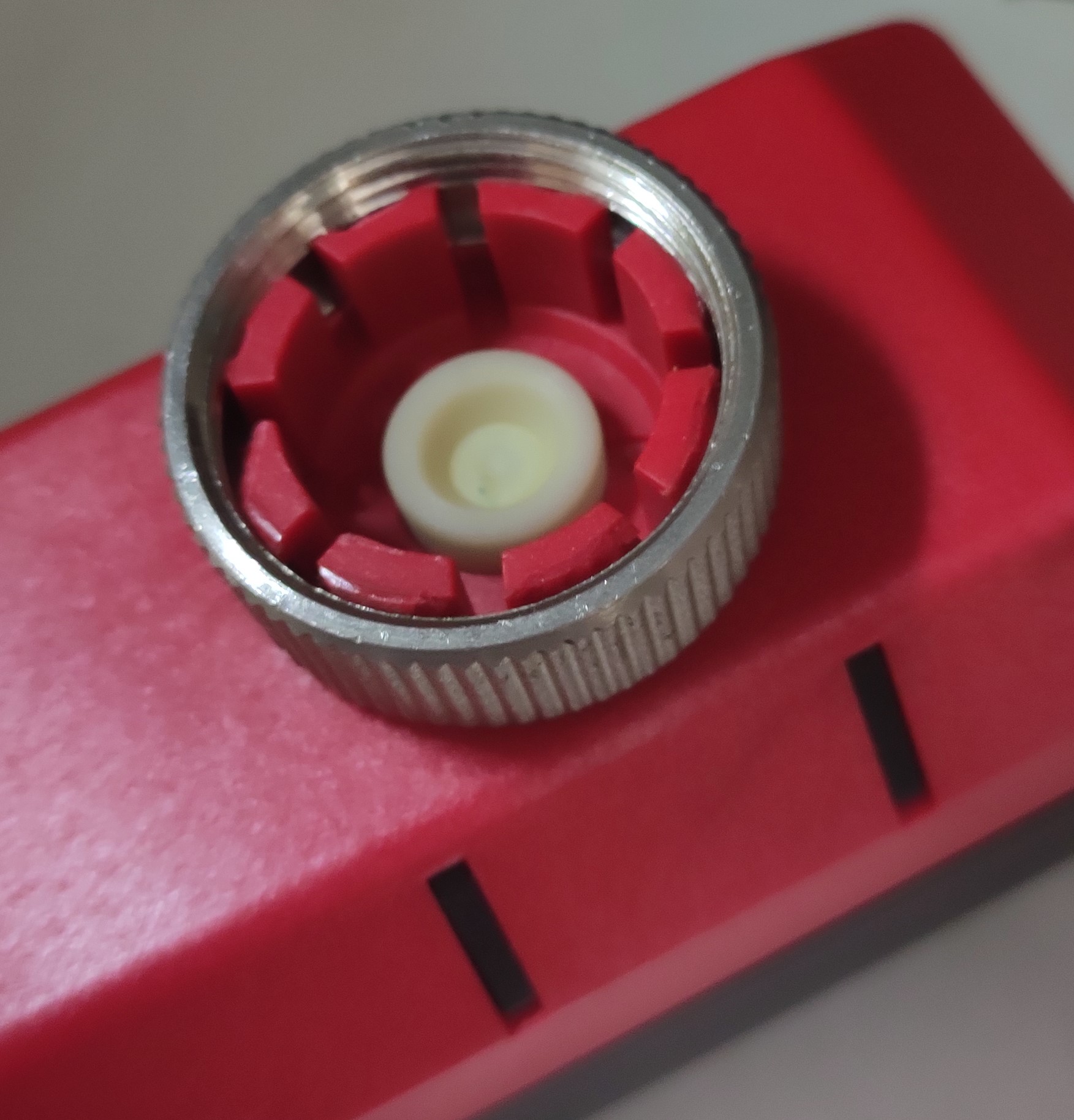 가운데 하얀부분이 튀어나오거나 들어가는 동작을 하면 구동기는 정상 동작하는것으로 볼수 있다.