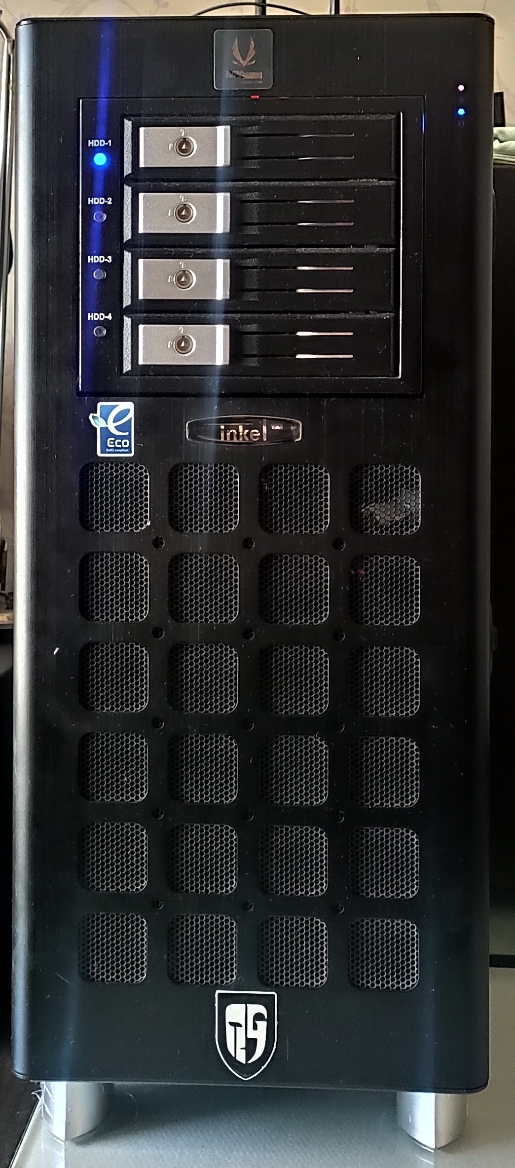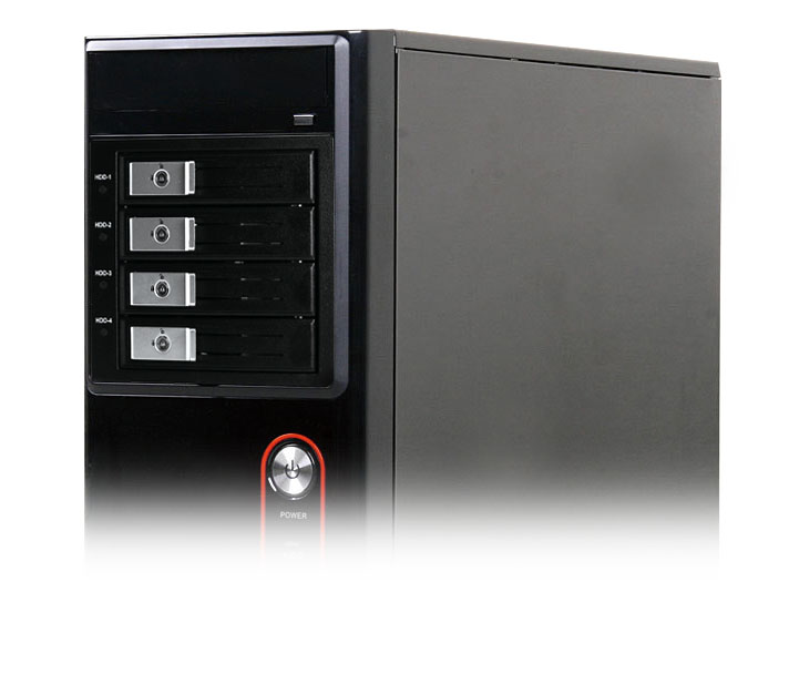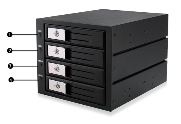 3개의 5.25" 공간 에서 4개의 3.5" SATA HDD를 지원합니다 .