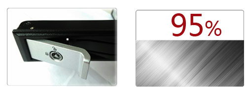 전면 베젤의 통풍구와 HDD 사이의 공간으로 적절한 공기 흐름을 설정하고 방열을 향상하는 80mm 팬을 추가하여 HDD 표면 온도가 15도를 초과하지 않도록 제어하여 HDD가 항상 정상 온도 범위에서 작동하도록 합니다..