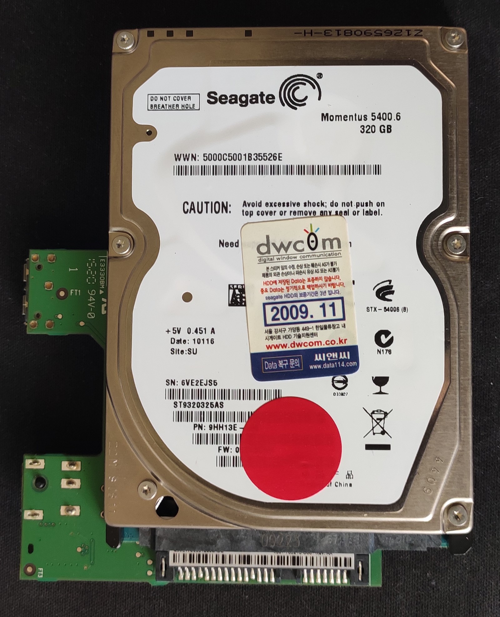 시게이트 320G 2.5 HDD 정상동작함