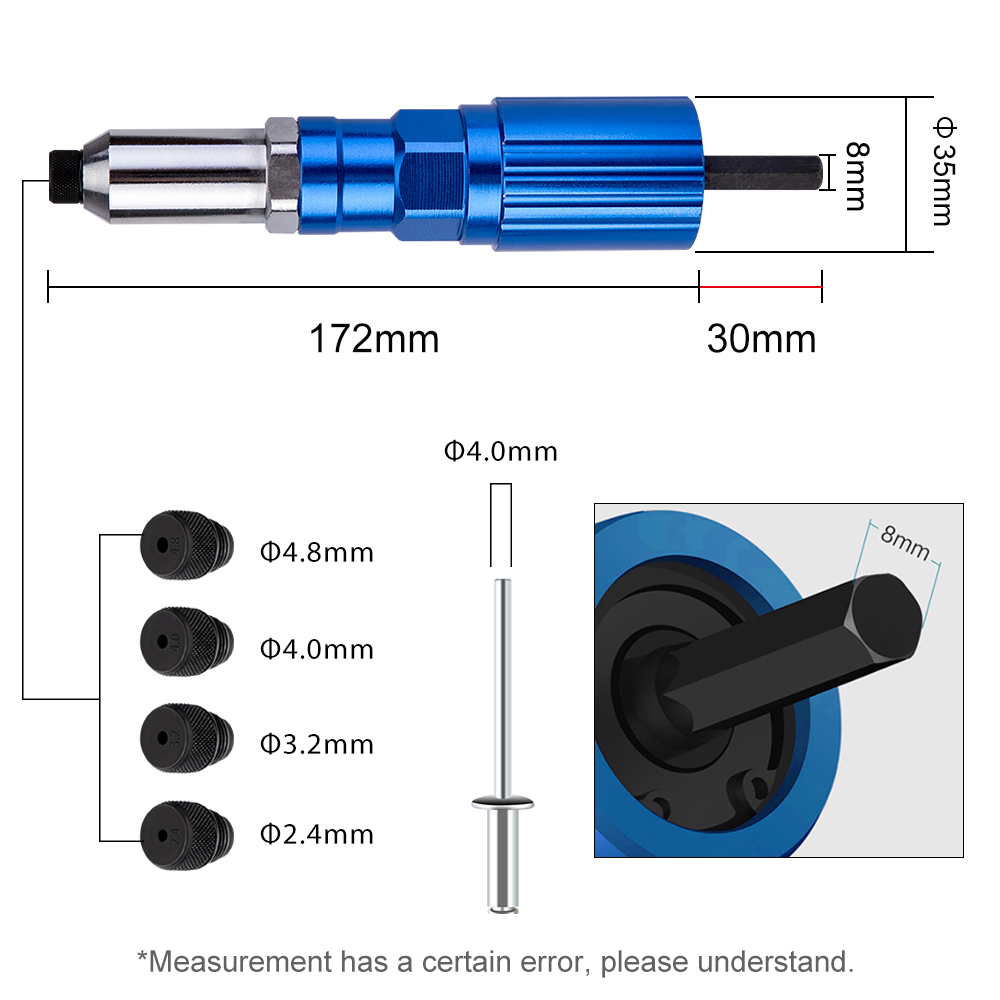 드릴용 리벳 건은 장착하고 드릴만 작동하면 바로 조여진다.