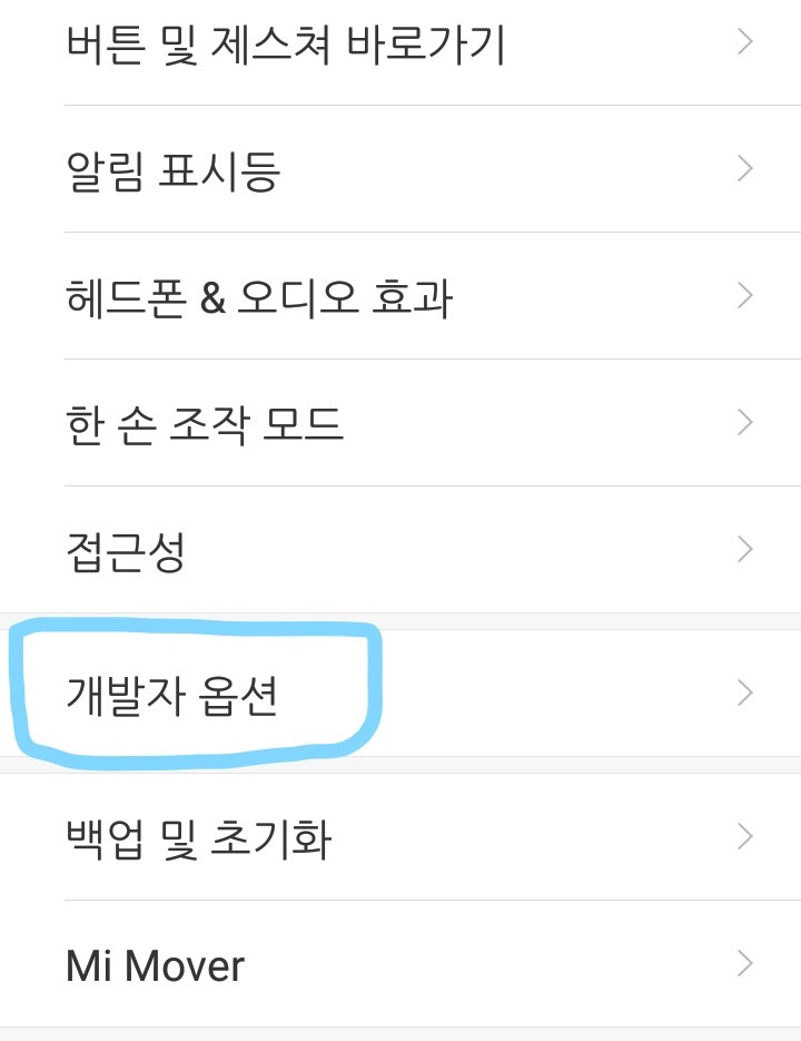 설정 → 추가설정(Additional settings) → 개발자옵션(Developer options)