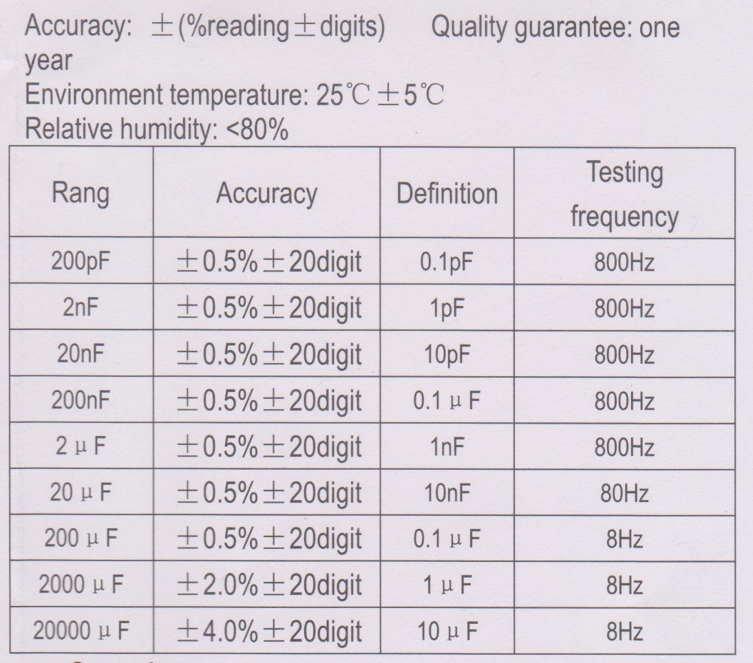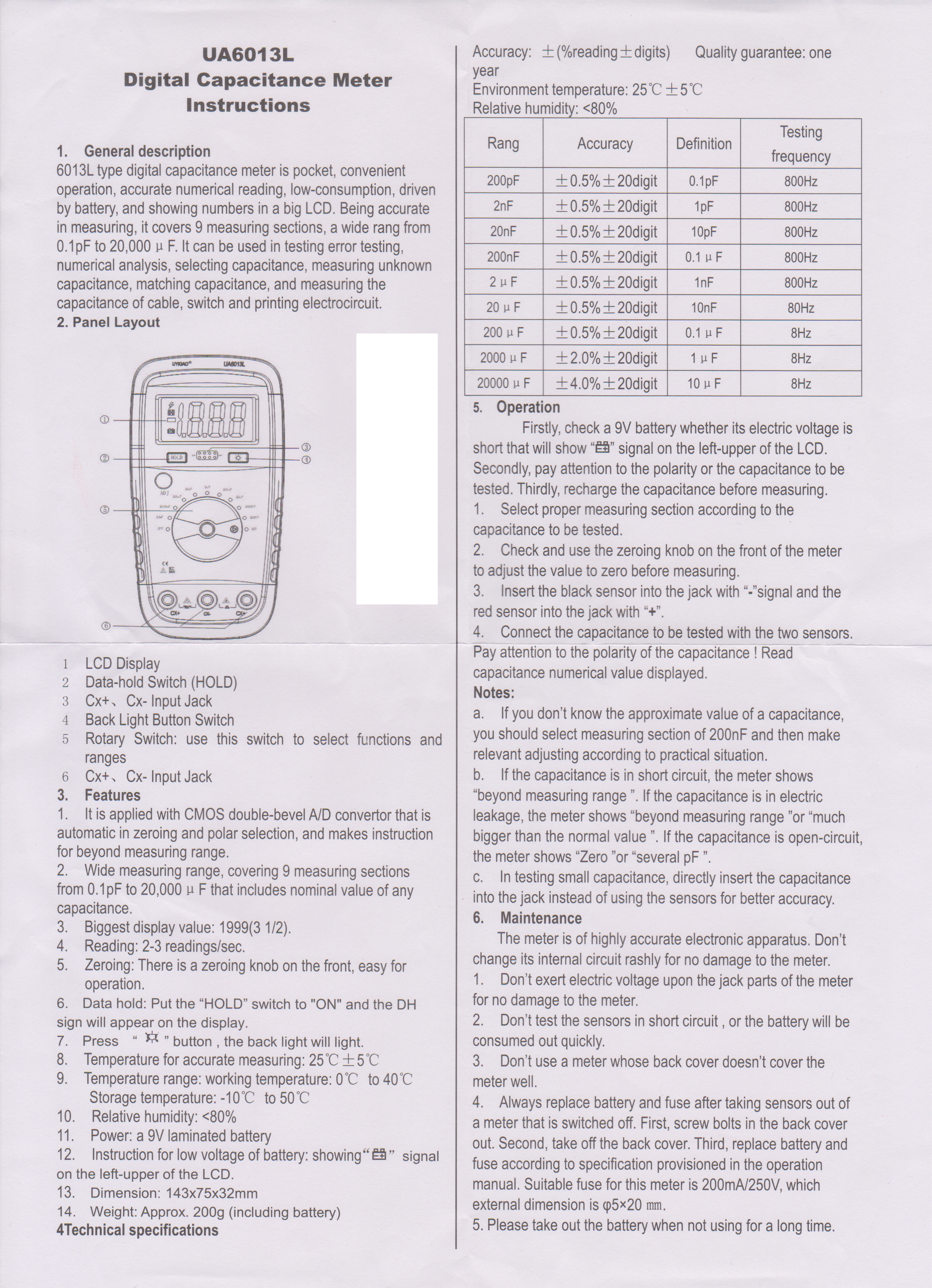 0.1pF에서 20,000uF까지 광범위한 9 개의 측정 섹션이 있다.