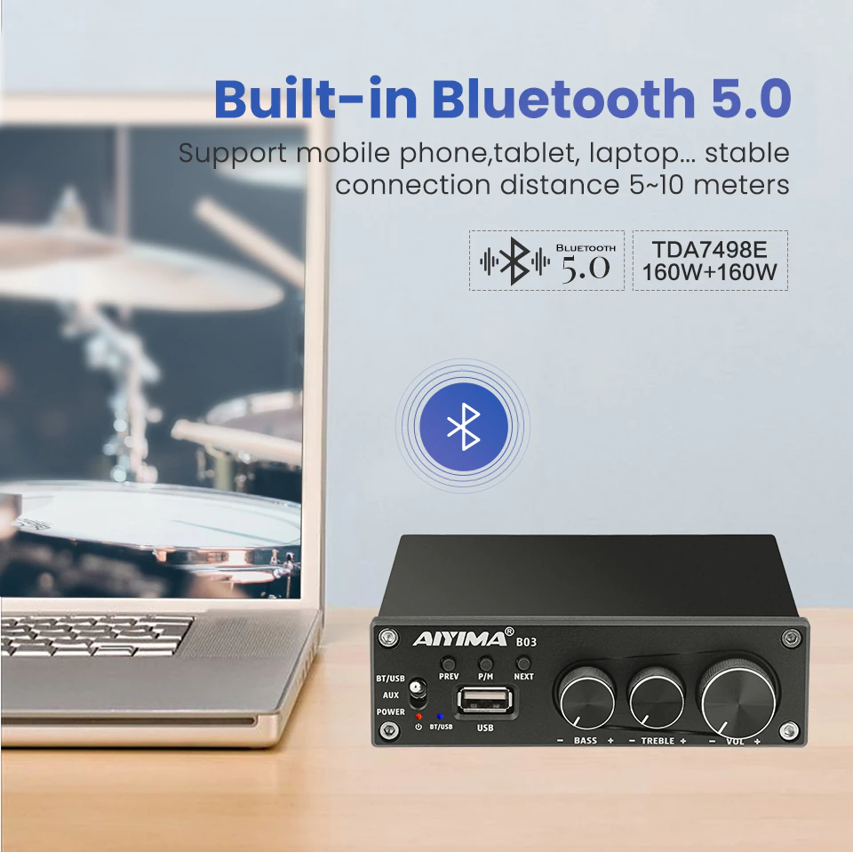 AIYIMA B03 160W+160W Bluetooth 5.0 Digital Power Amplifier