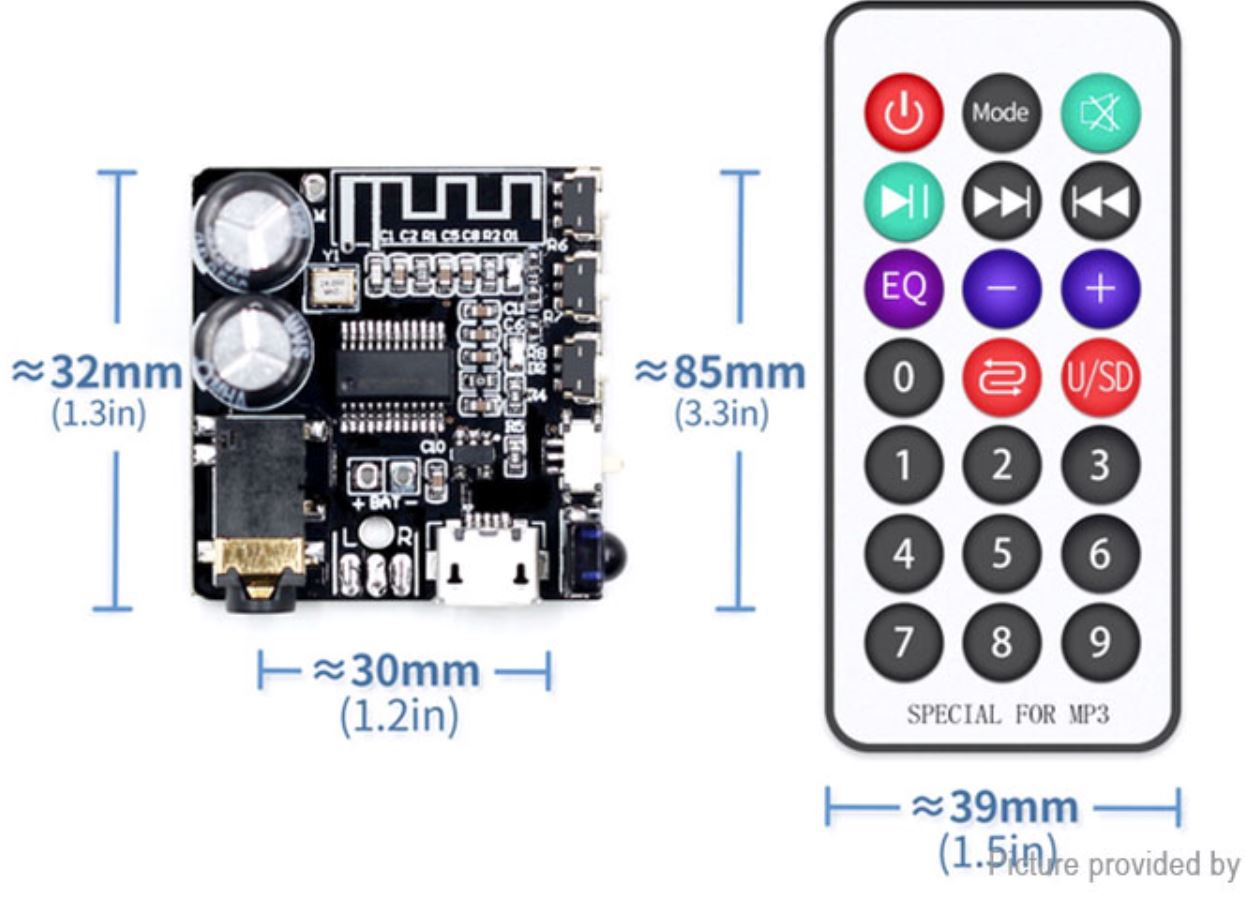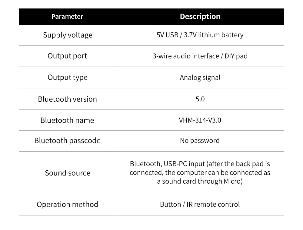 - Supply voltage: 5V USB / 3.7V lithium battery