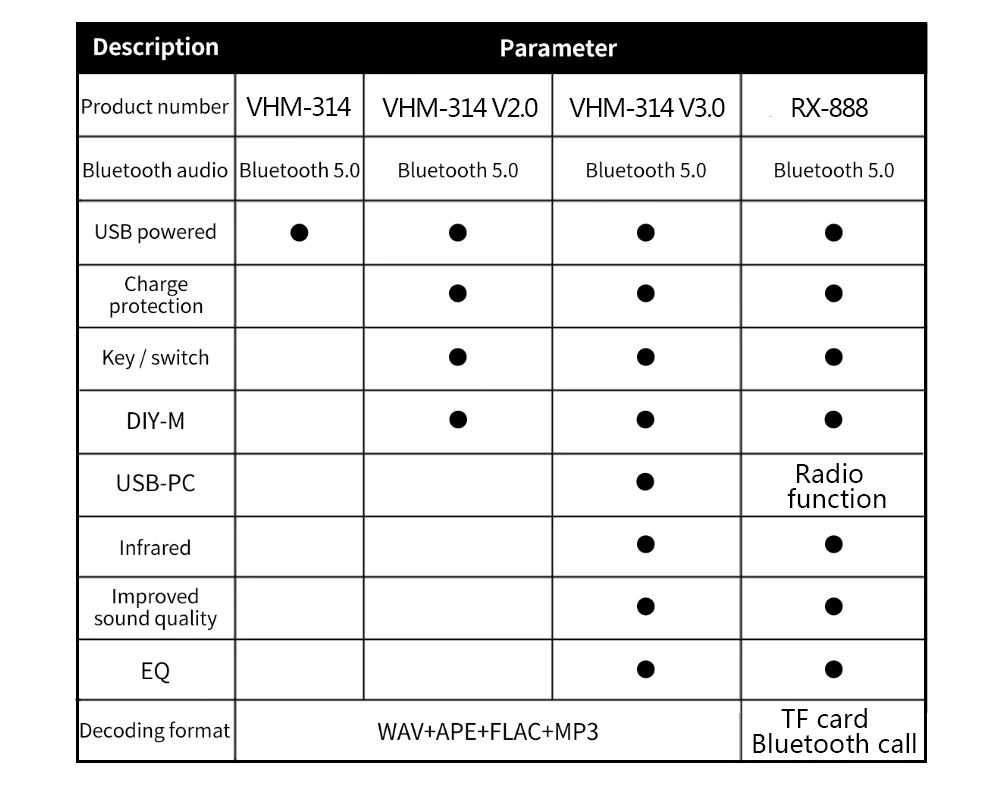 휴대폰 Bluetooth에서 디코딩 보드의 장치 이름 검색 “VHM-314V30"