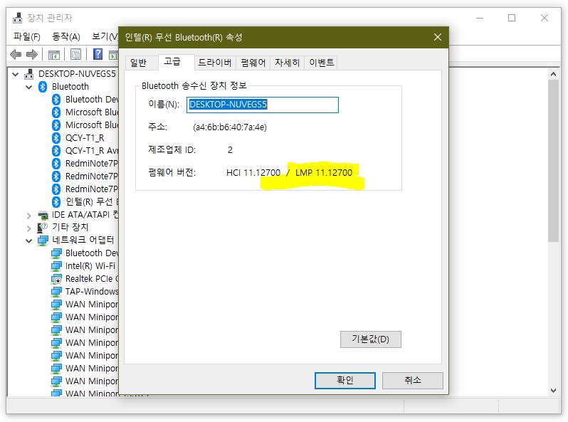 내 피시 불루투스 버전 확인하기