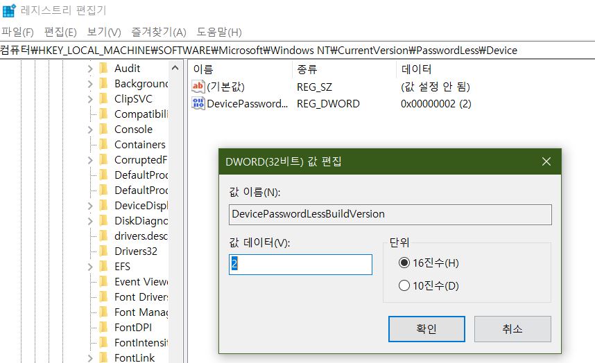 [HKEY_LOCAL_MACHINE\SOFTWARE\Microsoft\Windows NT\CurrentVersion\PasswordLess\Device]