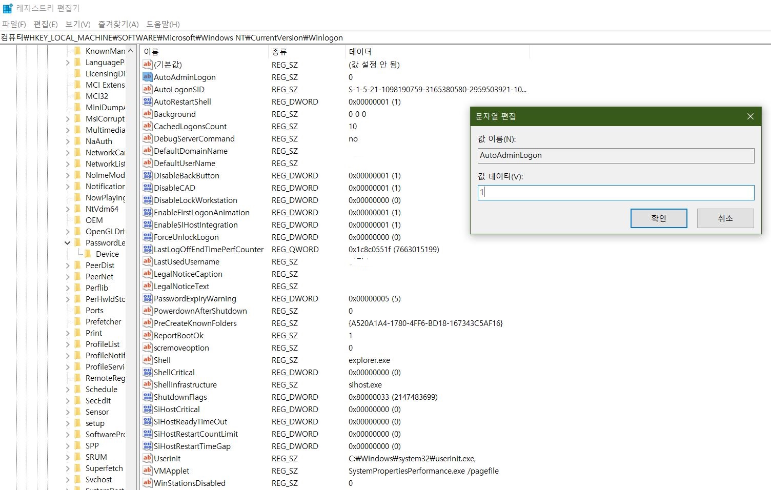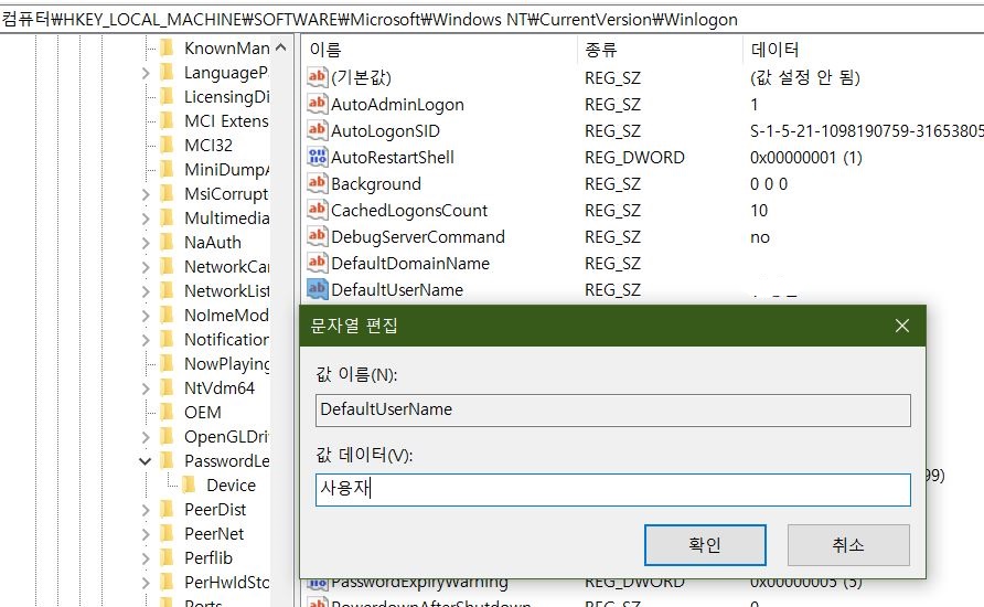 DefaultUserName=자동 로그인 할 사용자 이름 (REG_SZ)