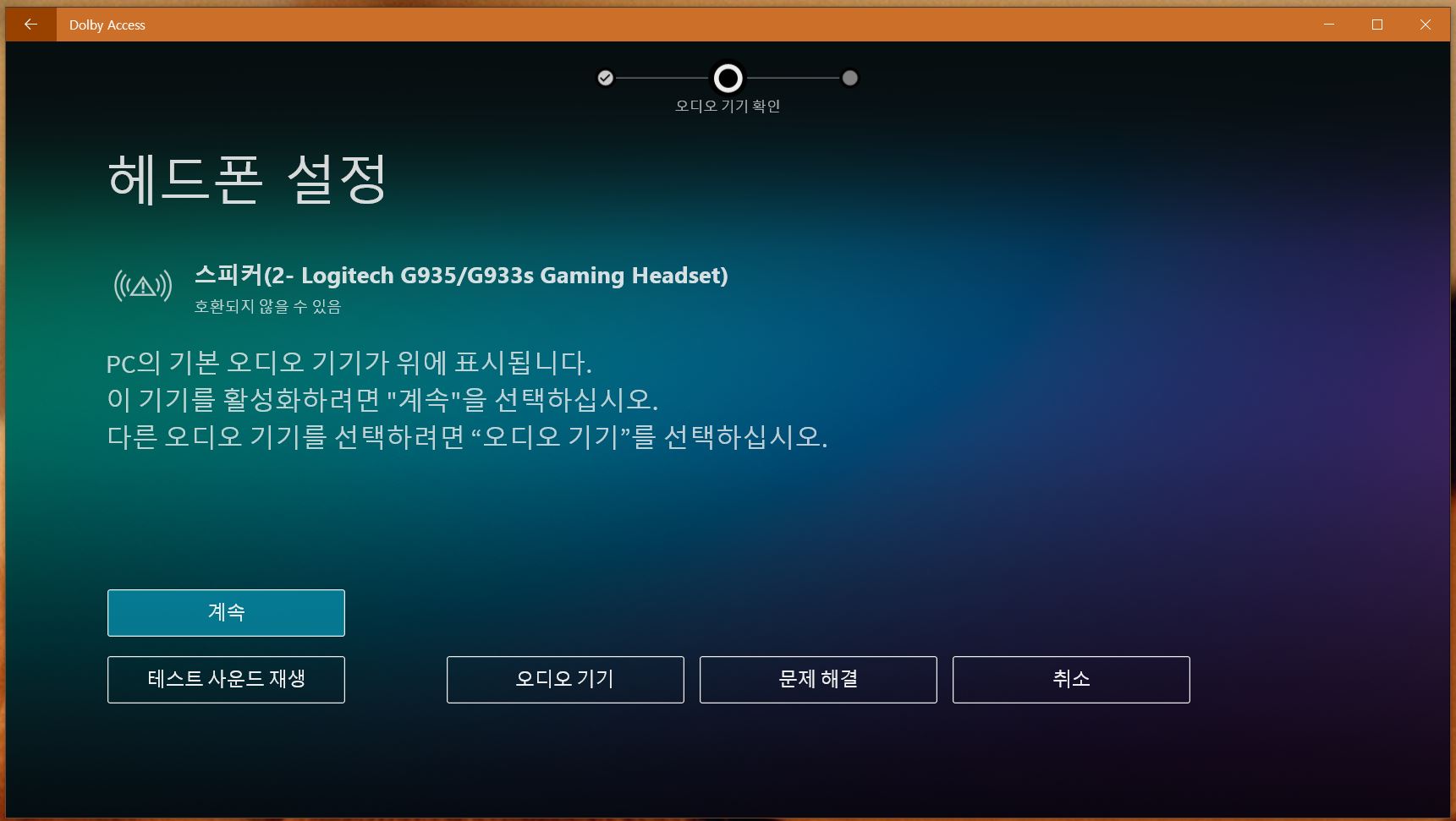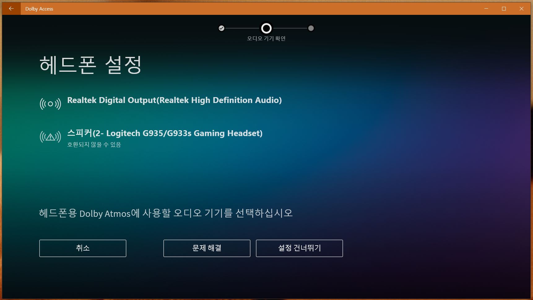 Logitech G-HUB의 세팅이 그대로 올라와 돌비 애트모스가 비활성화되는 것 같다.