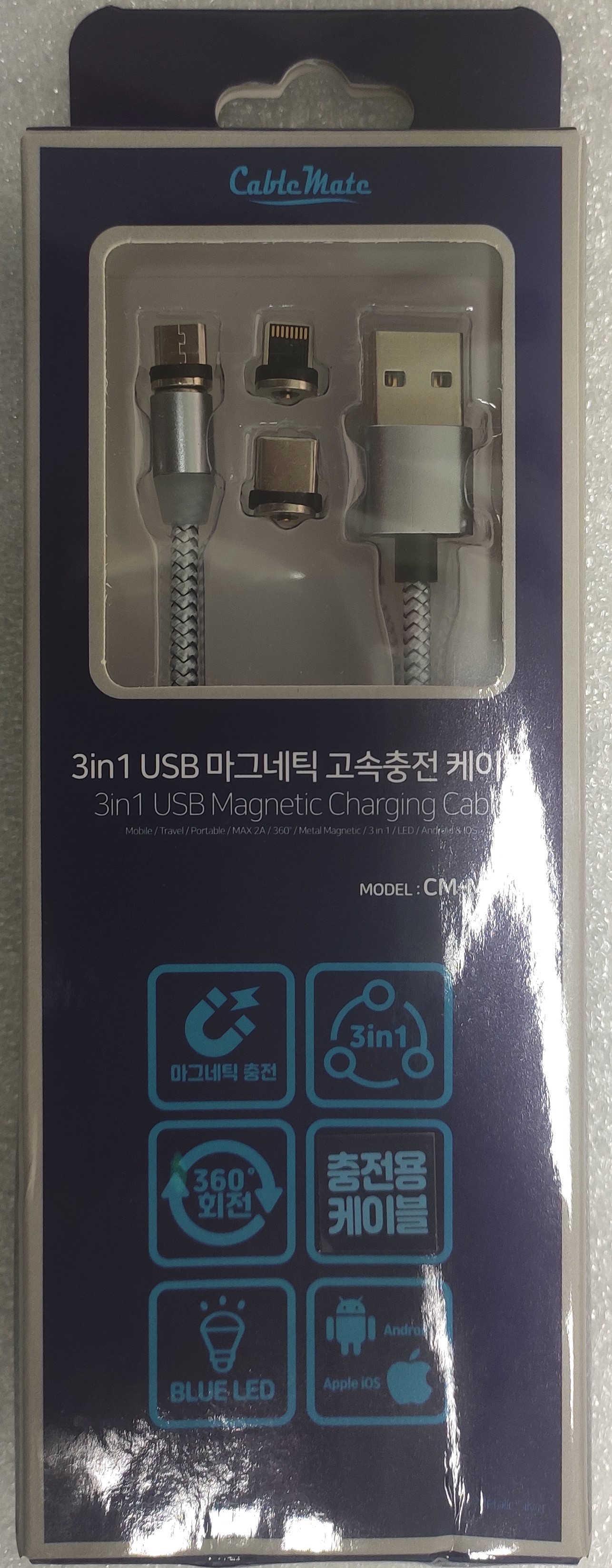 자석 케이블 USB C 단자1개 , USB 5핀 단자 1개 아이폰 라이트닝 단자1