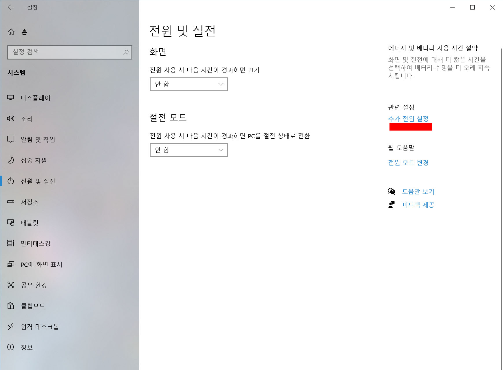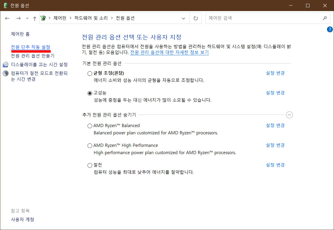 2. 전원 관련 설정 변경
