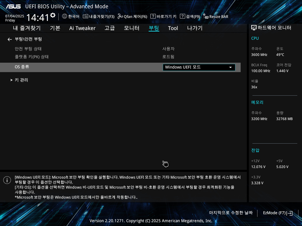 windows 11 설치 후 다른 OS 모드 설정에서 UEFI 모드 설정으로 바꾼 후 컴퓨터 켤 때마다 이벤트 표시하는 경우가 있다.