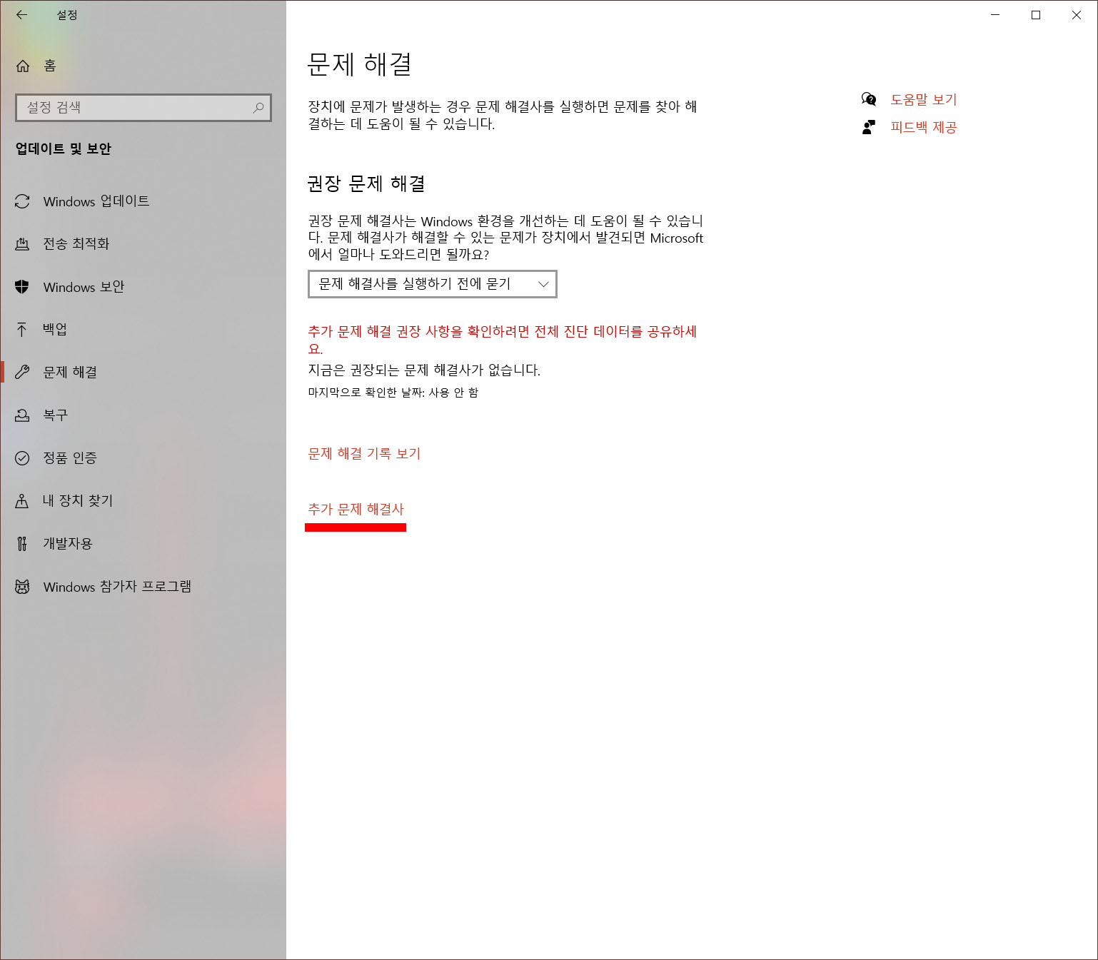 E. 윈도 업데이트에서 문제 해결사 실행해 보기
