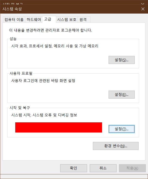 (이건 최후의 보루..... 일단 설정하지 않고 증상이 다시 나타나면 위 작업 설정 후 지켜본다.)