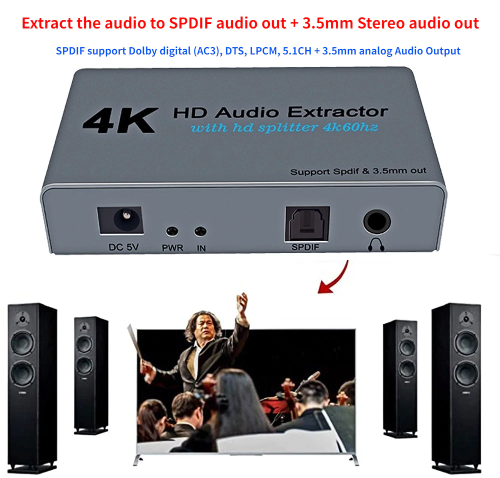 HDMI Audio Splitter 4K 60Hz HDMI Audio Extractor