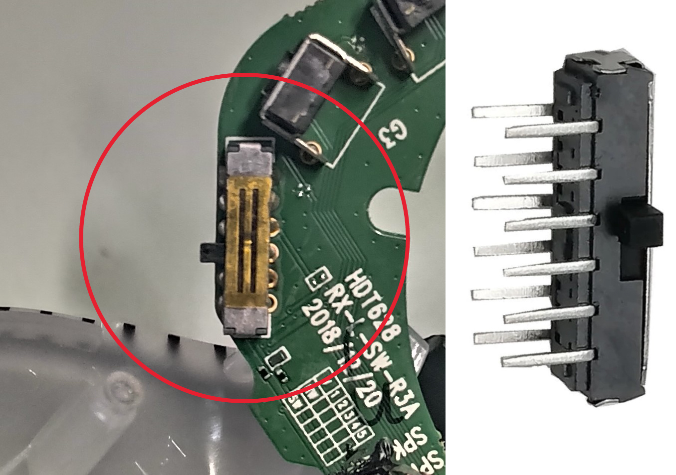 기존 스위치를 제거하고 새 스위치를 납땜해서 교체해 준다.