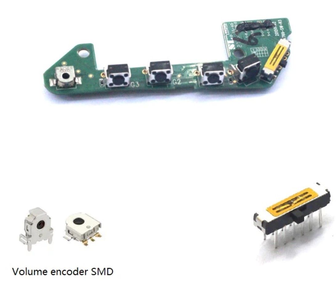 스위치와 볼륨 조절(Volume encoder SMD) 단자이다.