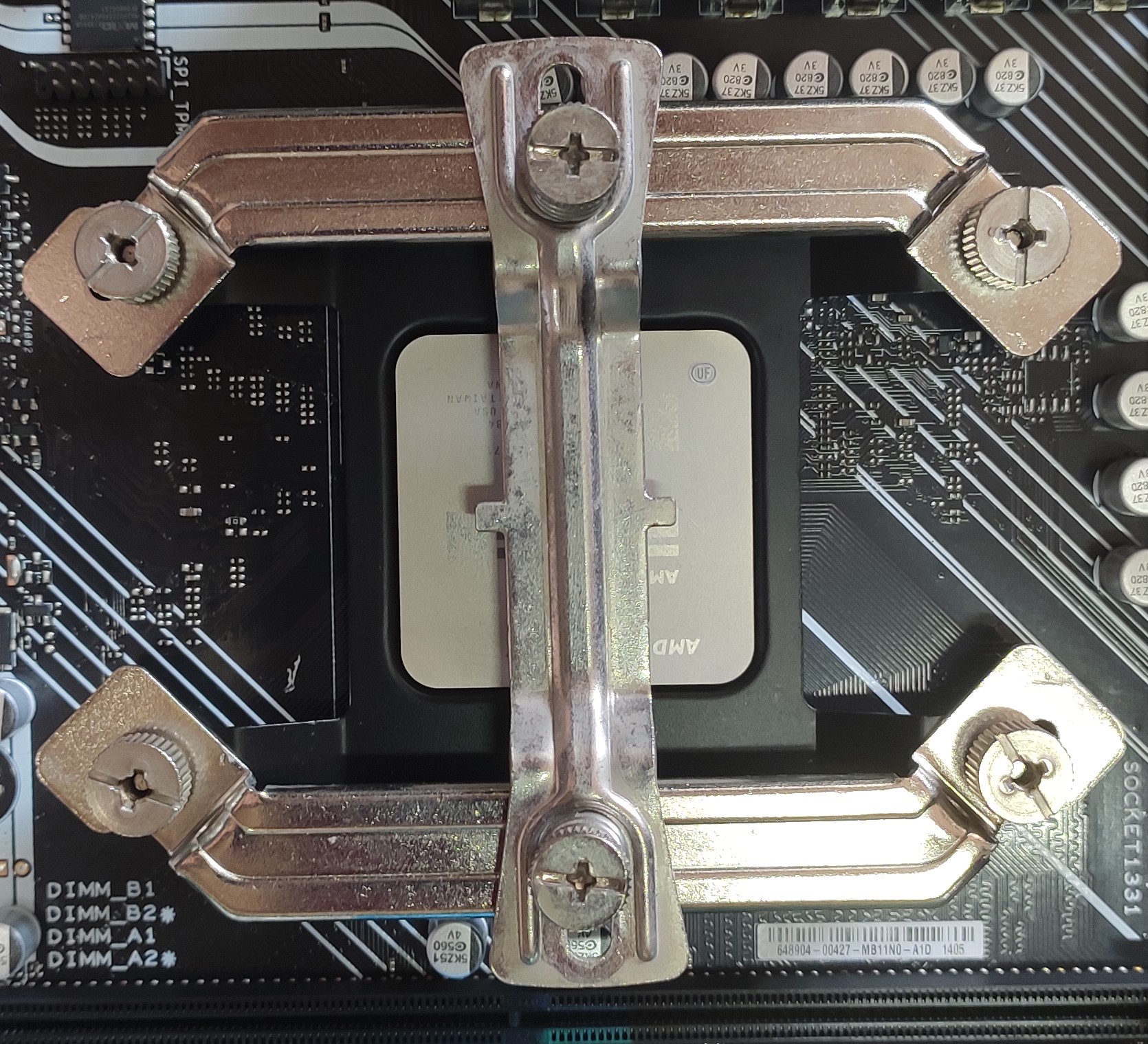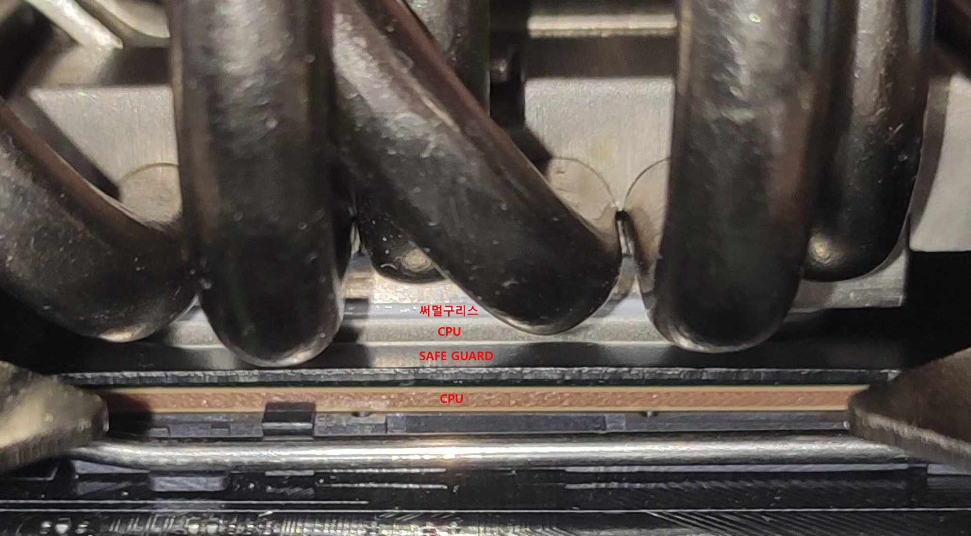 세이프티 브래킷보다 CPU가 위로 올라와 있어 쿨러 접촉면과의 간섭은 전혀 없다.