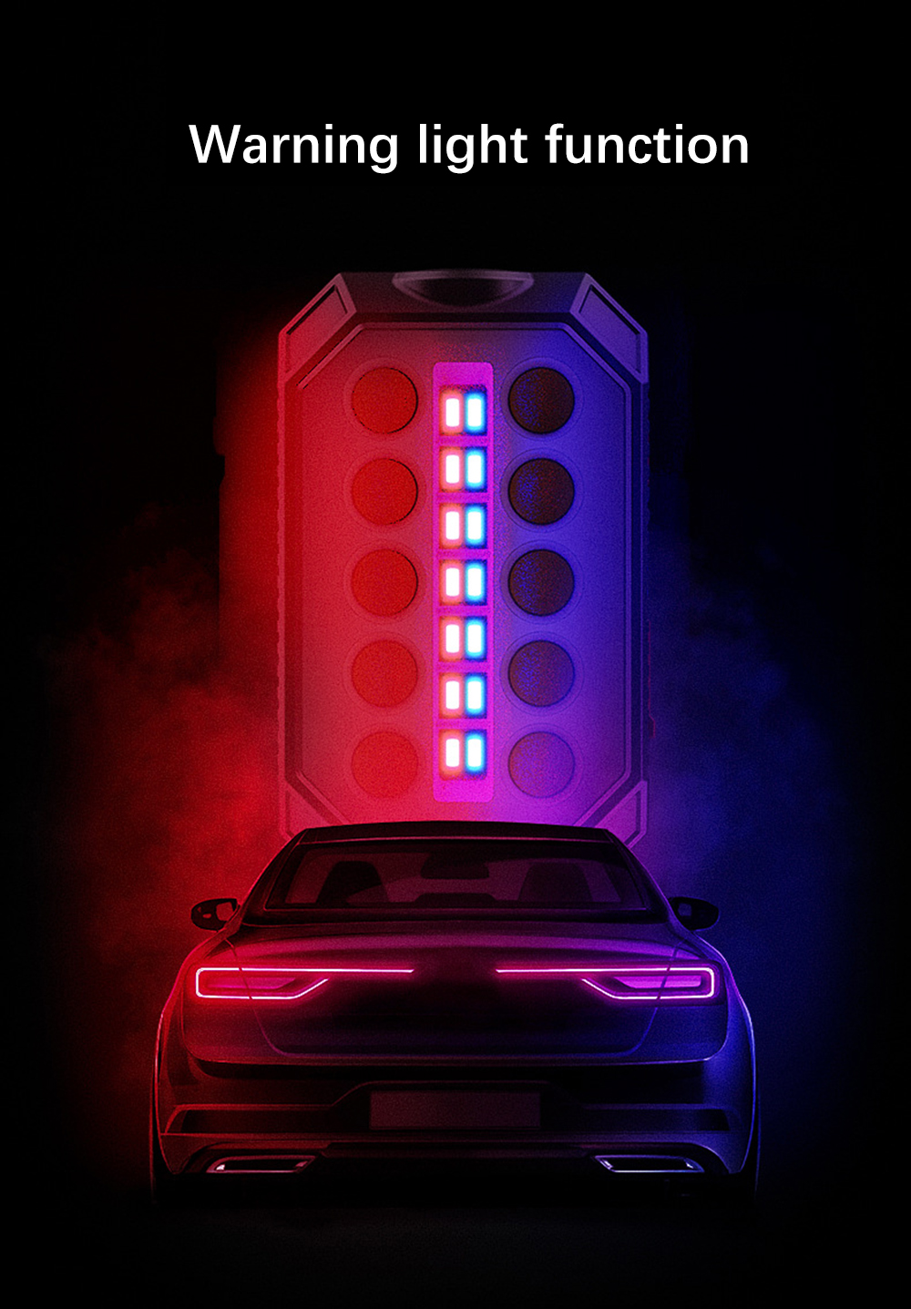 4.Equipped with alternating red and blue lights, which can be used as warning lights