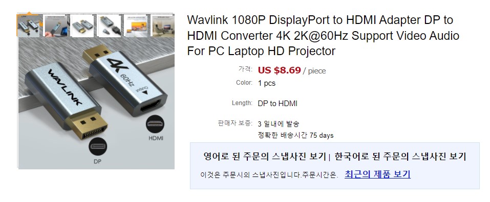 만리 GTX960 ( DP 1.2 X 3 HDMI 2.0 X 1) 4K 60Hz 성공