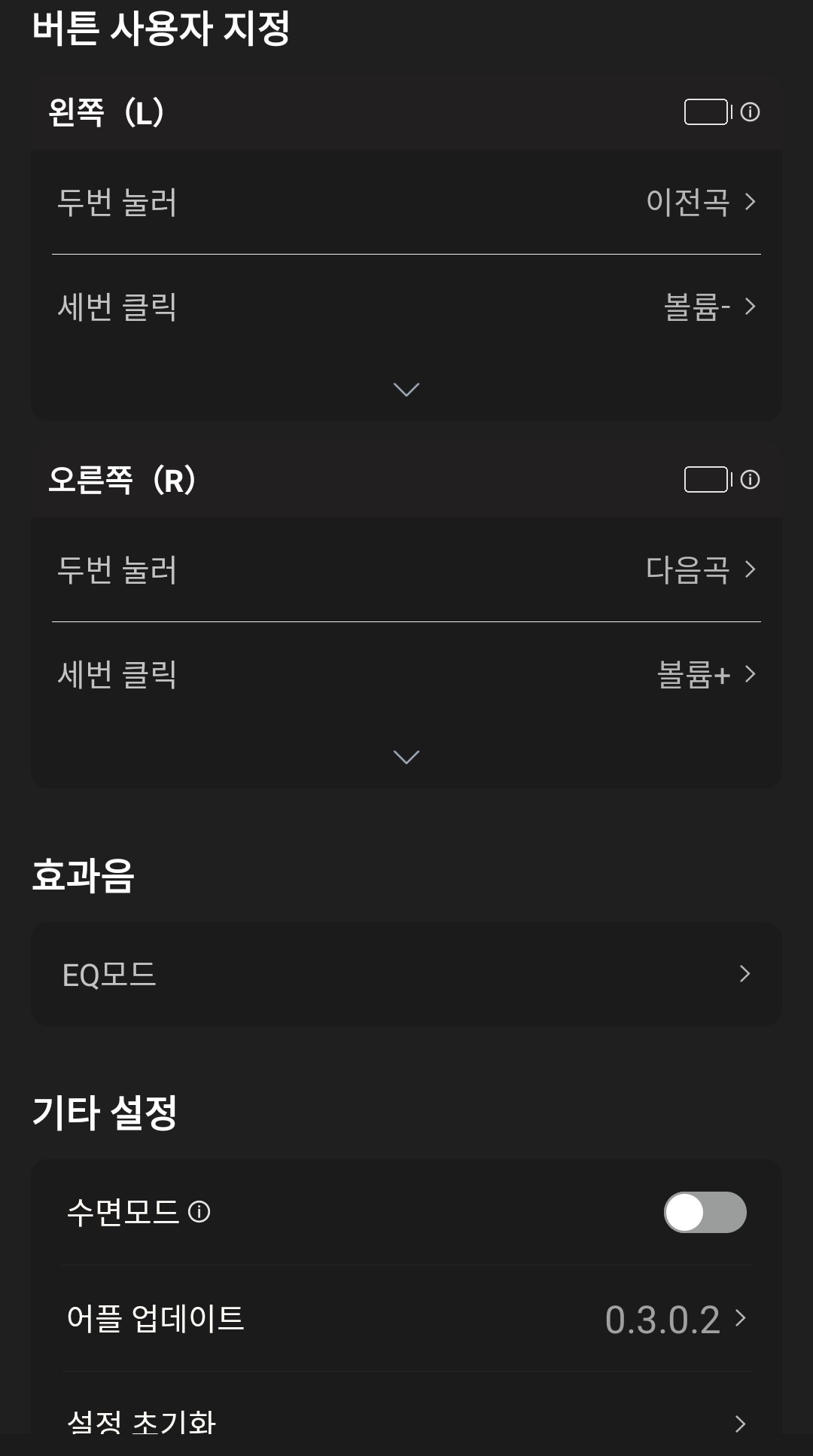 이퀄라이저모드는 기본 디폴트가 가장 좋은것 같다.