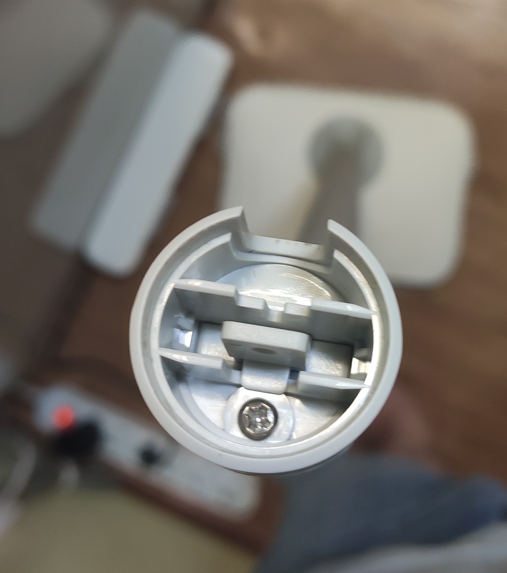 샤오미 미지아 D260 물걸레 청소기 분해 수리 일단 분해하기 위해서는 봉을 분리해 준다. 봉을 빼고 제품을 뒤집어서 분해하면 작업하기가 편하다. 금속 부분을 눌러서 빼준다. 참고로 아래 육각
