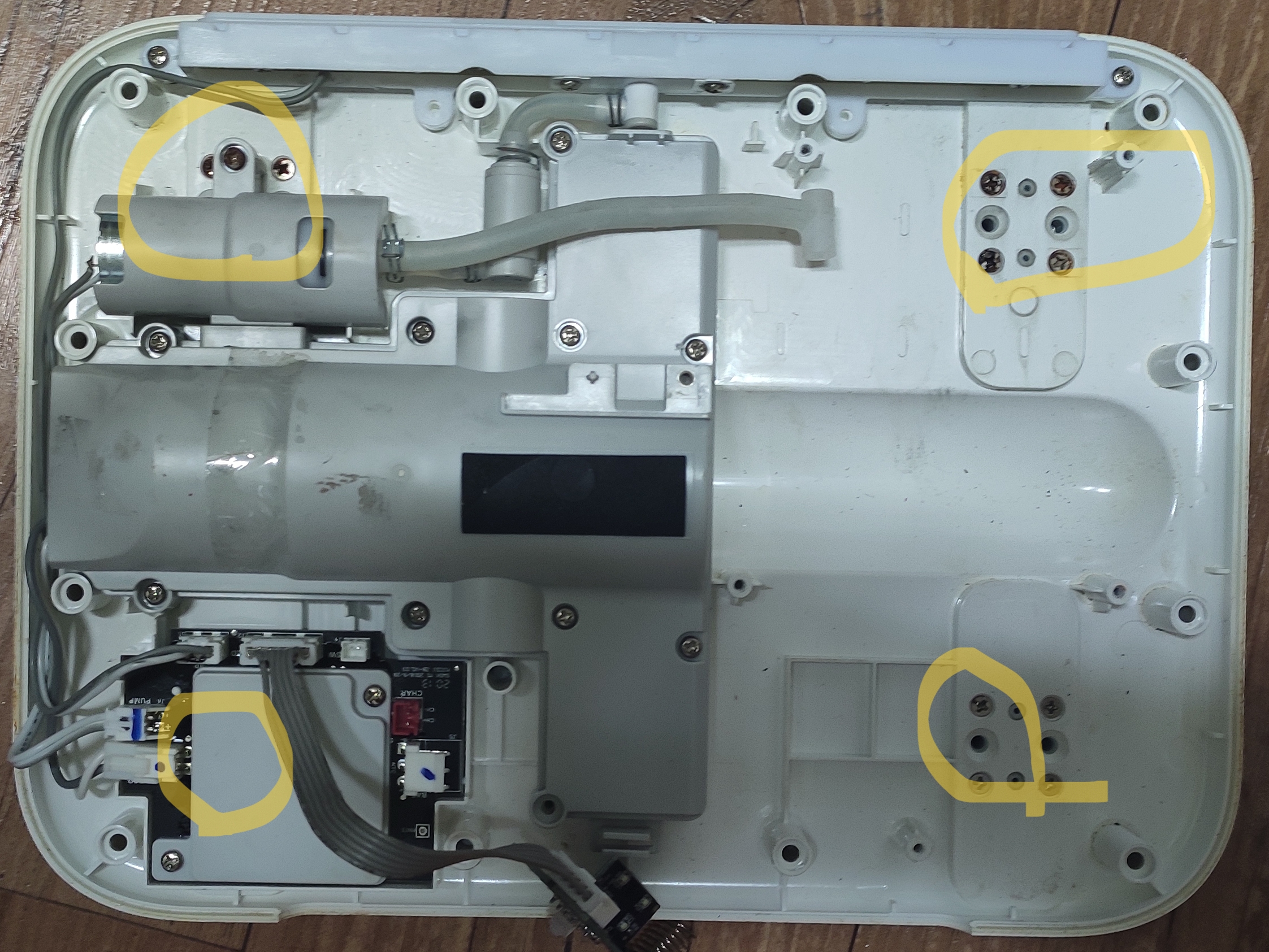 노란 부분 나사를 분리해주면 아래판을 뗄 수 있다.