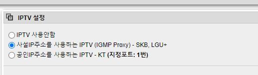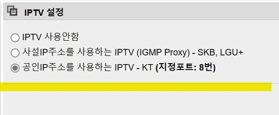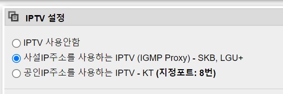 => IP TV 설정은 공인 IP 주소 사용으로 변경해 준다.