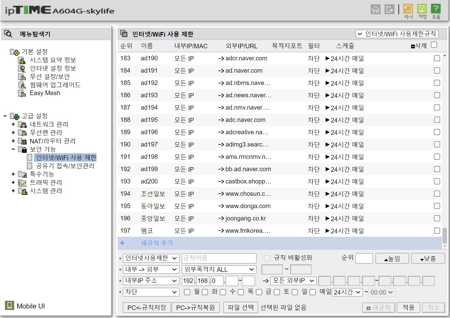 ** 인터넷 와이파이 사용제한 설정 풀림 문제 **