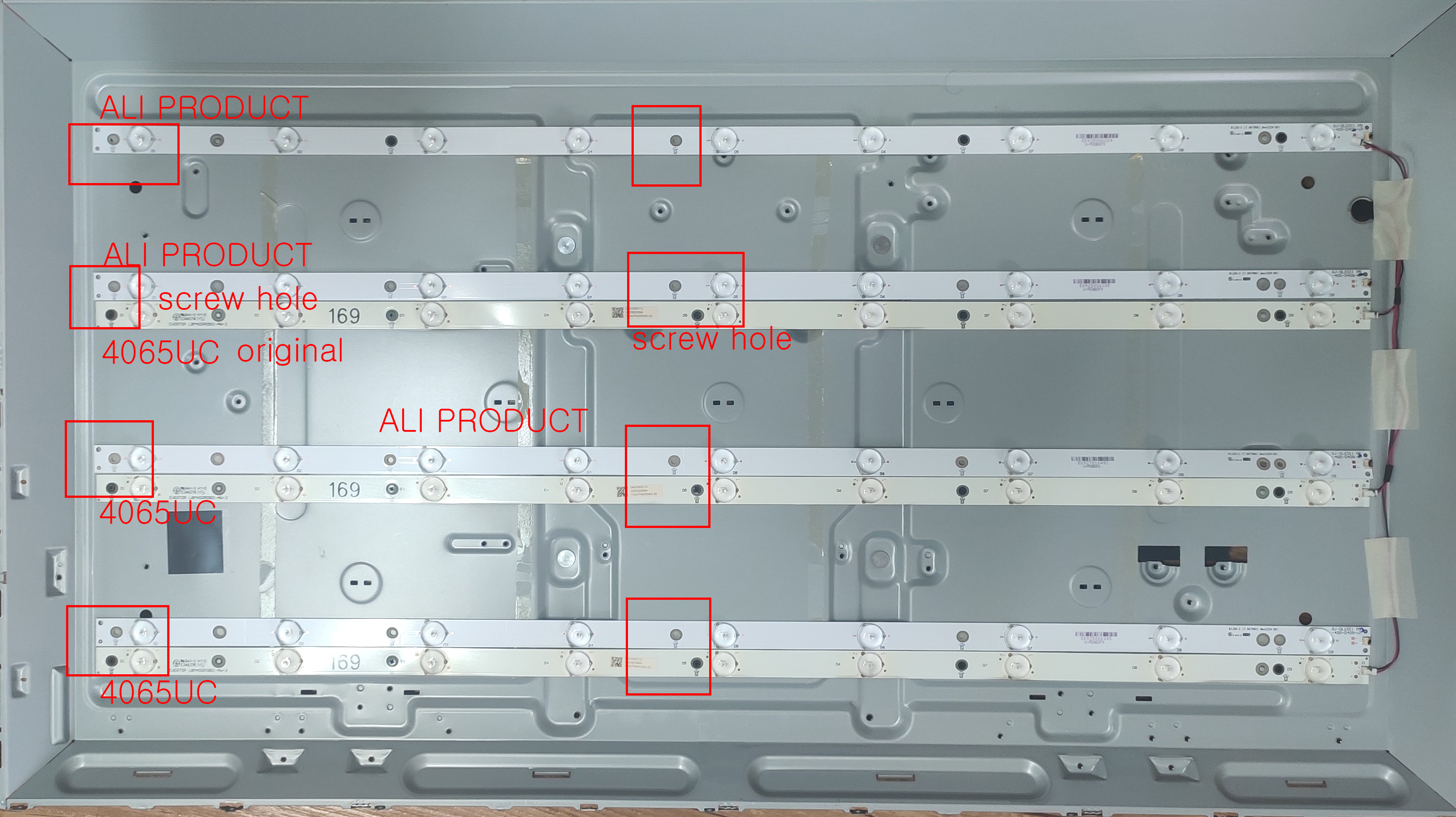 알리에서 구입한 전용 백라이트는 BDM4065UC전용이라고 쓰여있어서 구매 했는데...나사 구멍이 맞지 않는다.