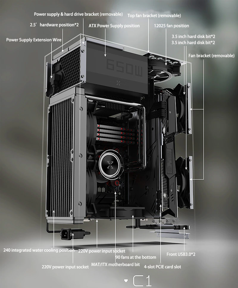 * 공냉식 및 수냉식 모드 모두 바닥에 9025 팬을 지원한다.