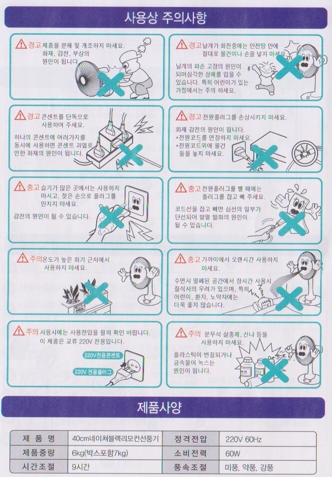 오래된 수동 선풍기는 모터고장보다는 오래 사용하다가 플라스틱이 금 가거나 깨져서 버리는 경우가 많다.