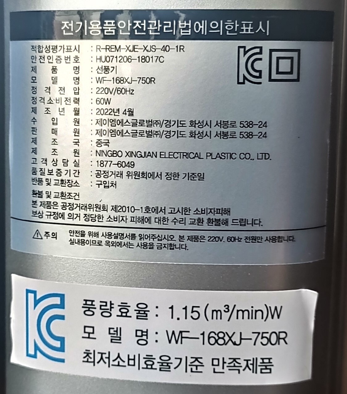 윈드피아 WF-168XJ-750R 선풍기 끼끼끽 모터 소음 해결하기