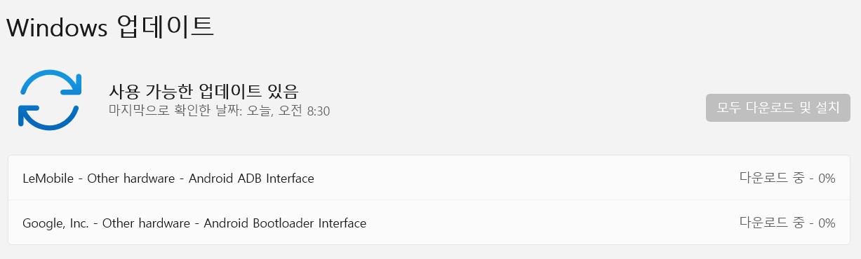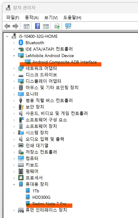 Android ADB Interface로 올라오거나 드라이버를 찾지 못해 기타 장치로 뜨는 것도 볼 수 있다.
