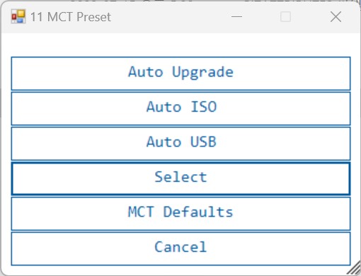 3. 11 MCT Preset에서 AUTO Ugrade를 선택하면 최신 버전으로 다운로드된다.