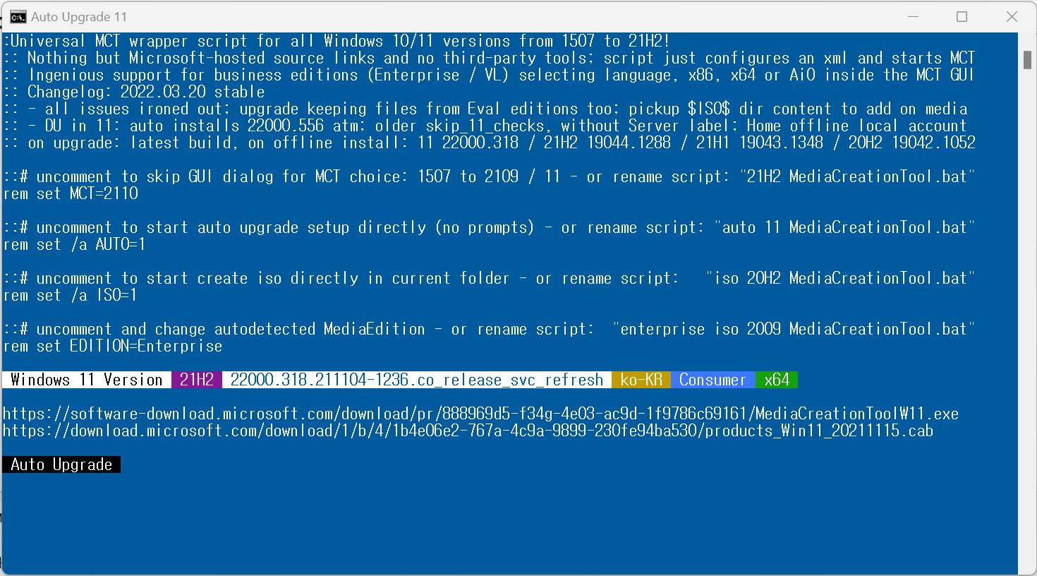 Universal MCT wrapper script for all Windows 10/11 versions from 1507 to 21H2! - GitHub - AveYo/MediaCreationTool.bat: Universal MCT wrapper script for all Windows 10/11 versions from 1507 to 21H2!