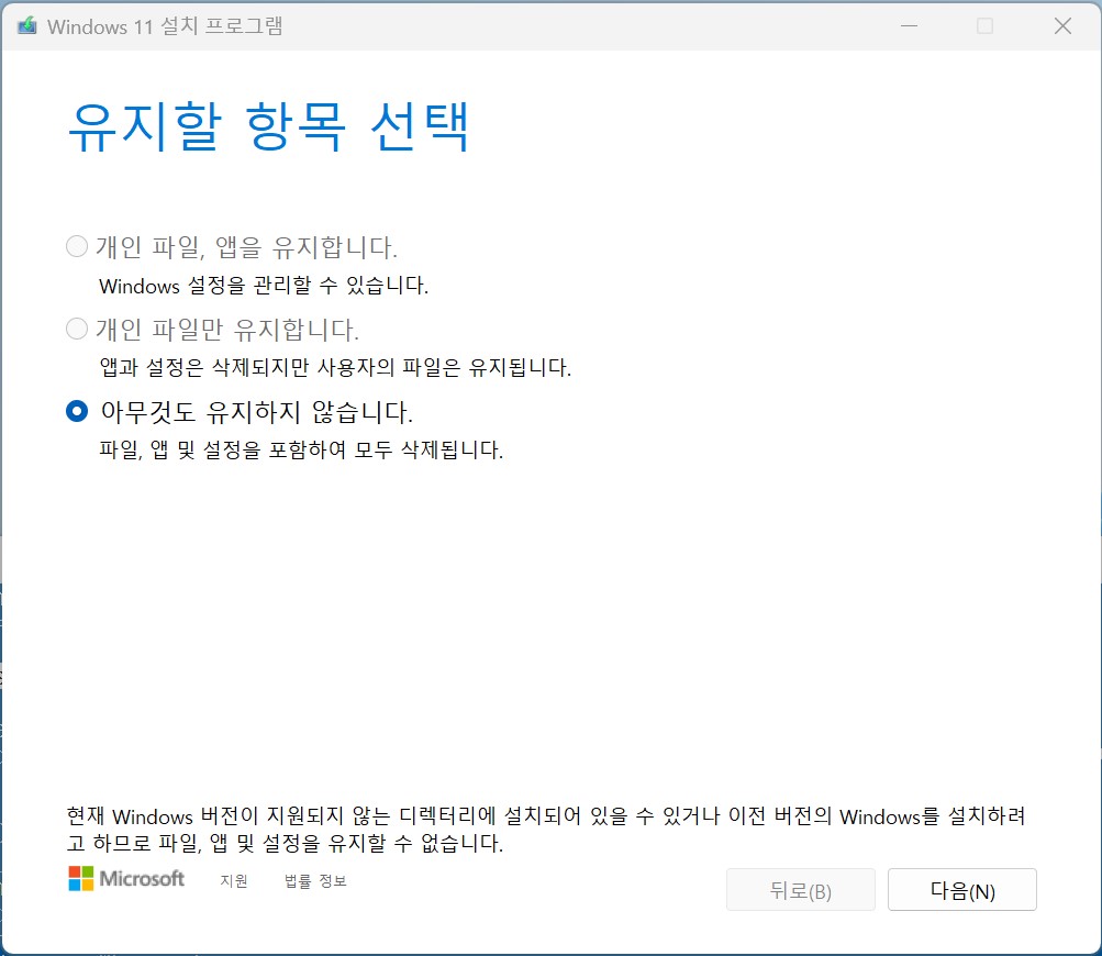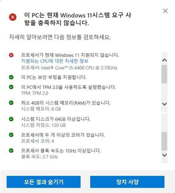 그동안은 CPU는 충족이 안되어도 다른 조건이 맞으면 크린 설치는 정상적으로 되었고