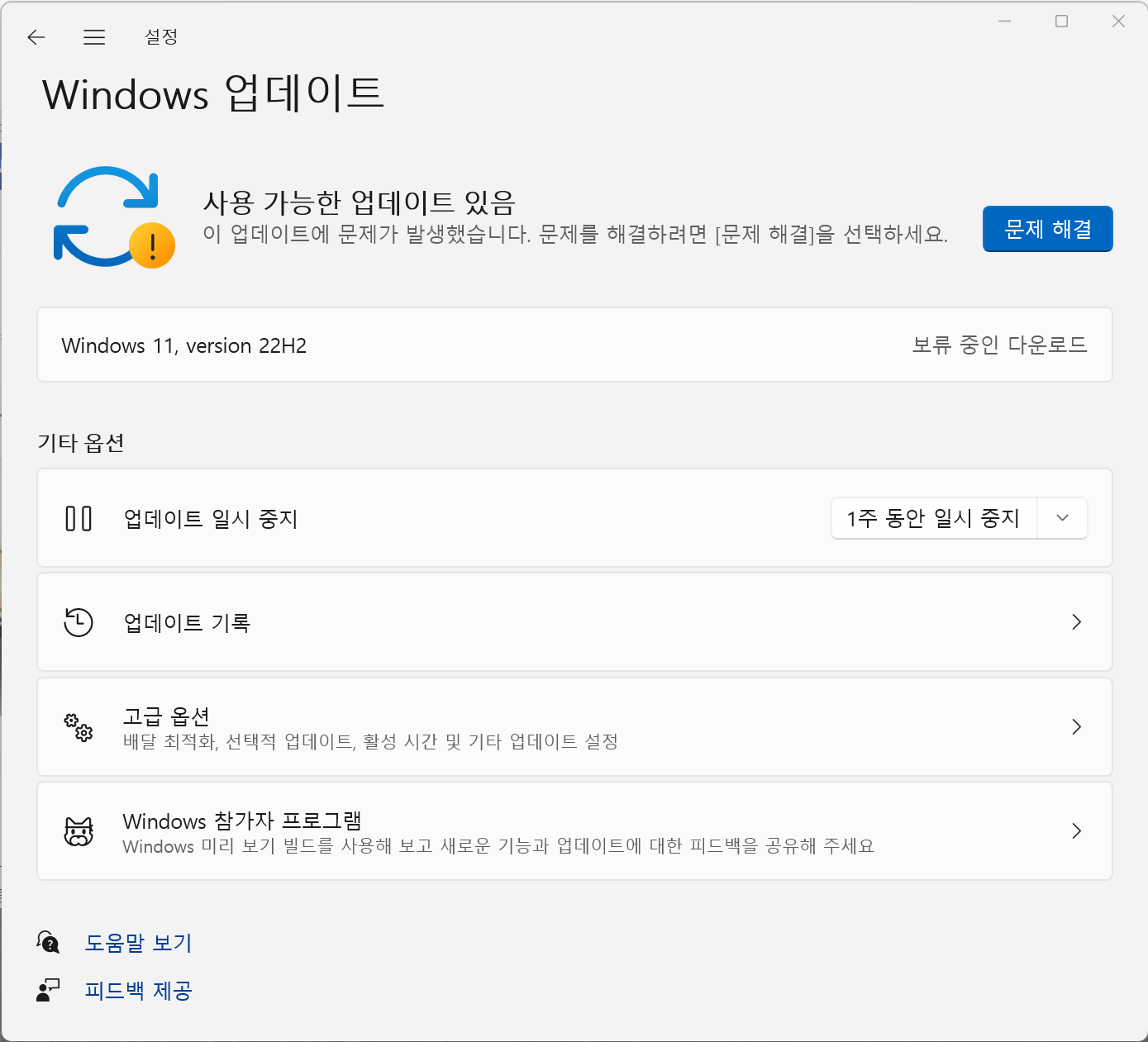 아래와 같은 메시지 나오면서 windows11 23H2버전으로 업데이트 안됨 해결