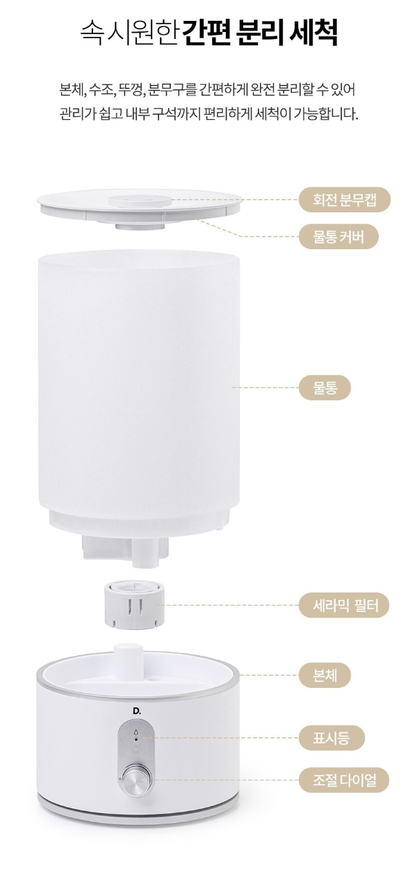 이제품은 가습기통을 분리할 필요 없이 그대로 물을 부어서 사용할 수 있다.
