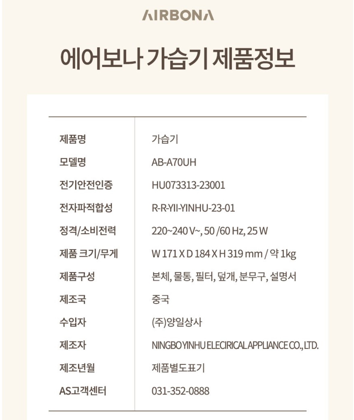 초음파 가습기 듀플렉스 에어보나 AB-A70UH