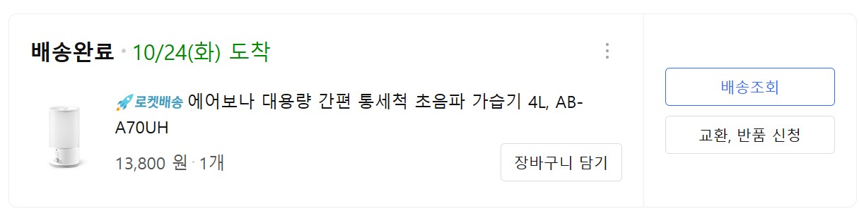 쿠팡에서 23800원 가습기 중 최저가이고 사용기 평도 괜찮은 편이라서 이 제품으로 결정