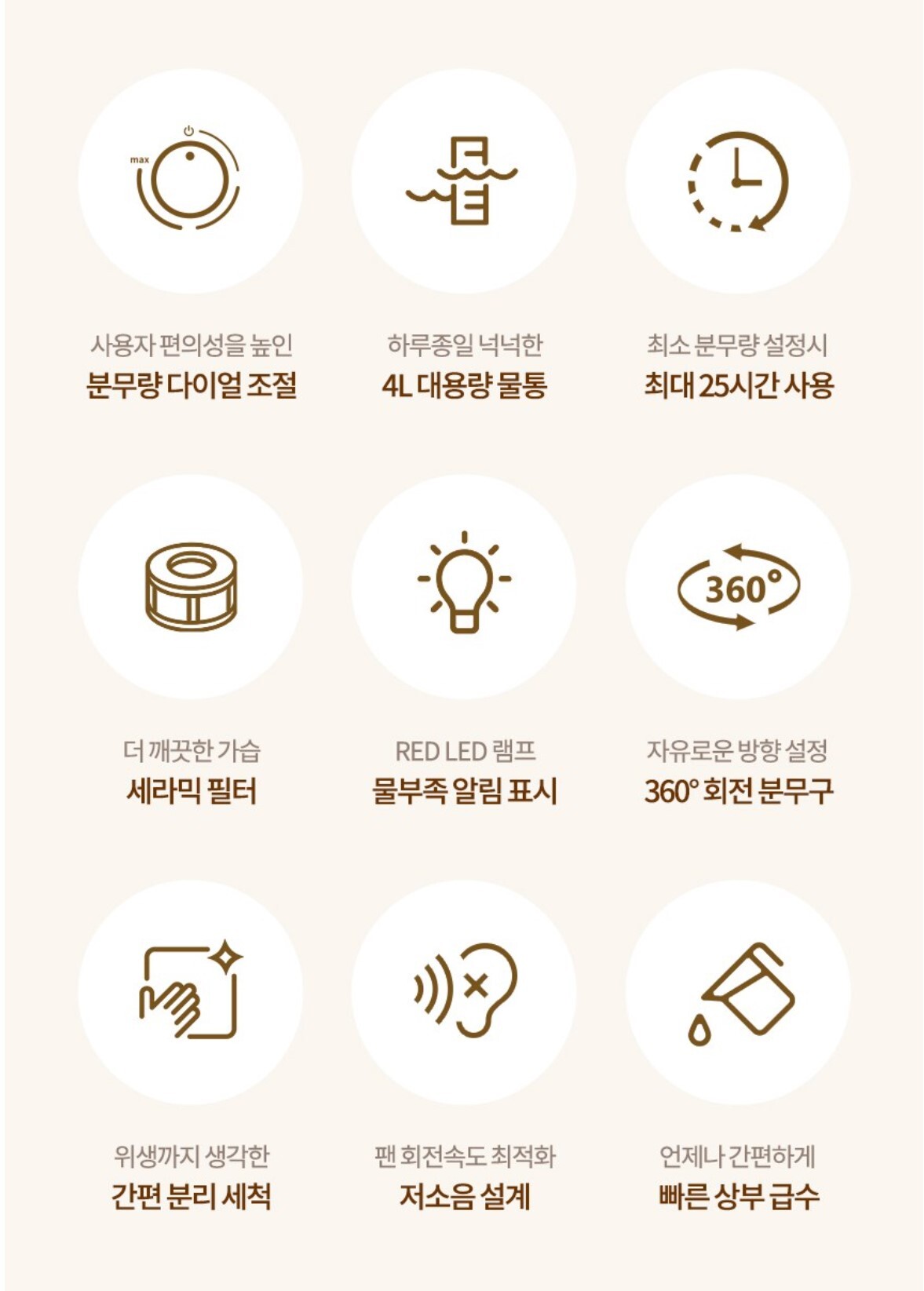 기존제품은 팬 돌아가는 소리와 물 떨어지는 소리가 거슬렸는데...