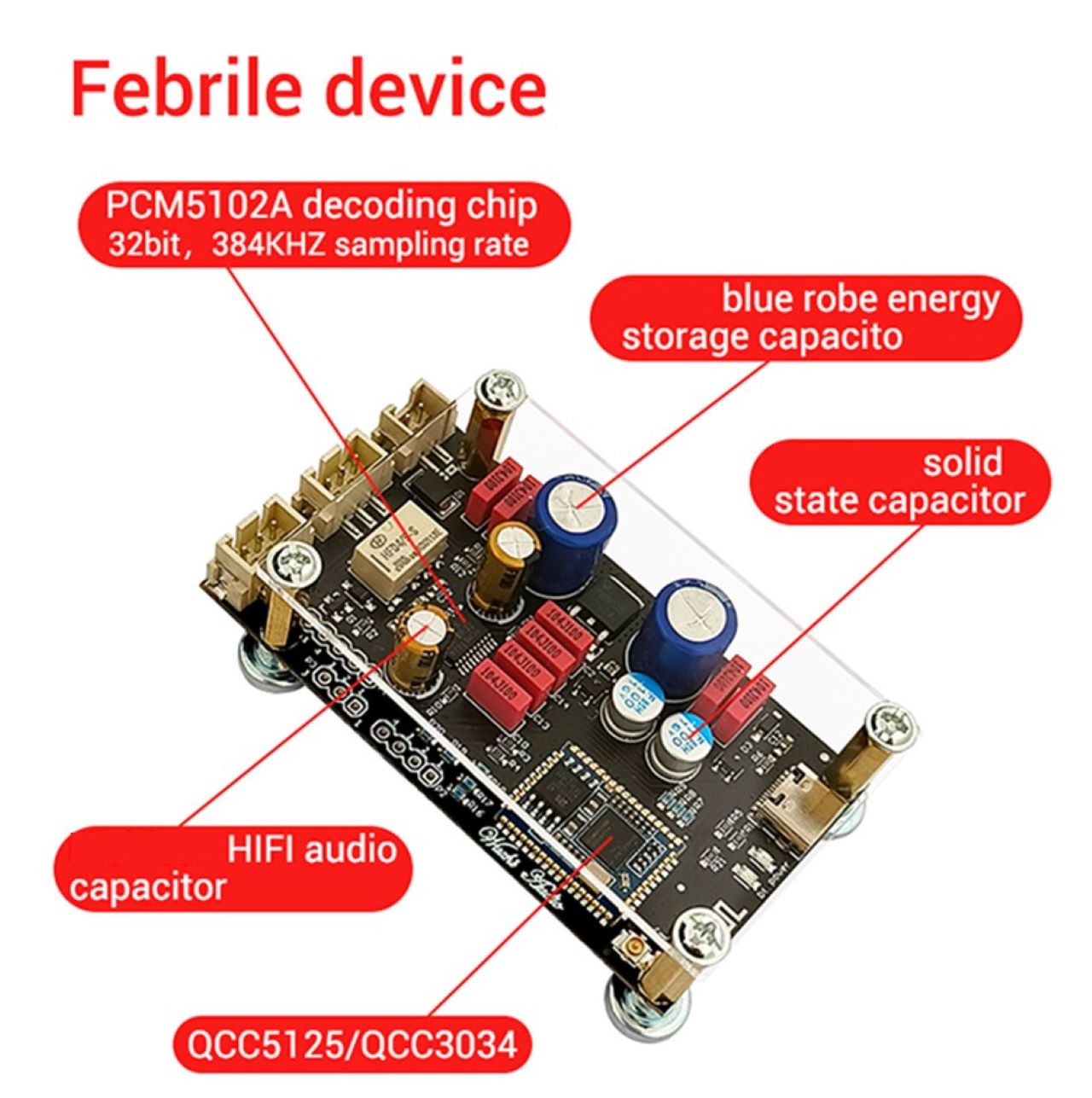 QCC3034 5.0 버전: PCM5102A 디코딩 칩, APTX, SBC,AAC,APTX-LL,APTX-HD 지원