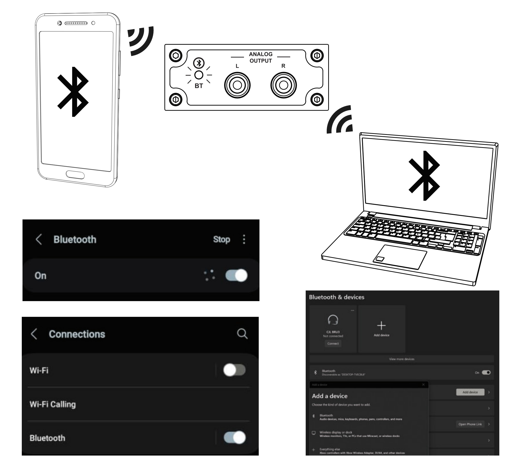 - 블루투스/USB에서 아날로그/동축/광학 변환기