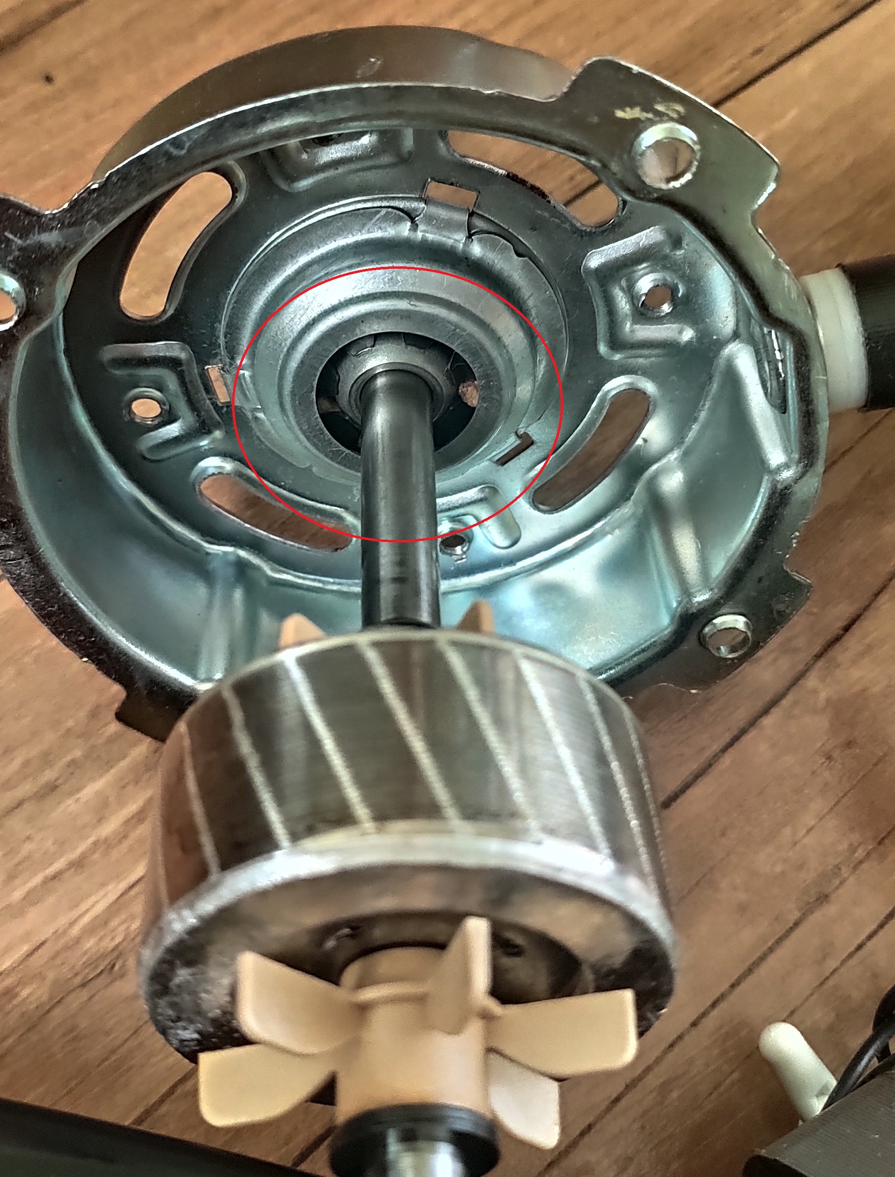 하루 종일 돌아가는 대형 선풍기중 모터가 과열되어 멈춘 경우 스핀들오일이 탄 흔적이 있다면.....