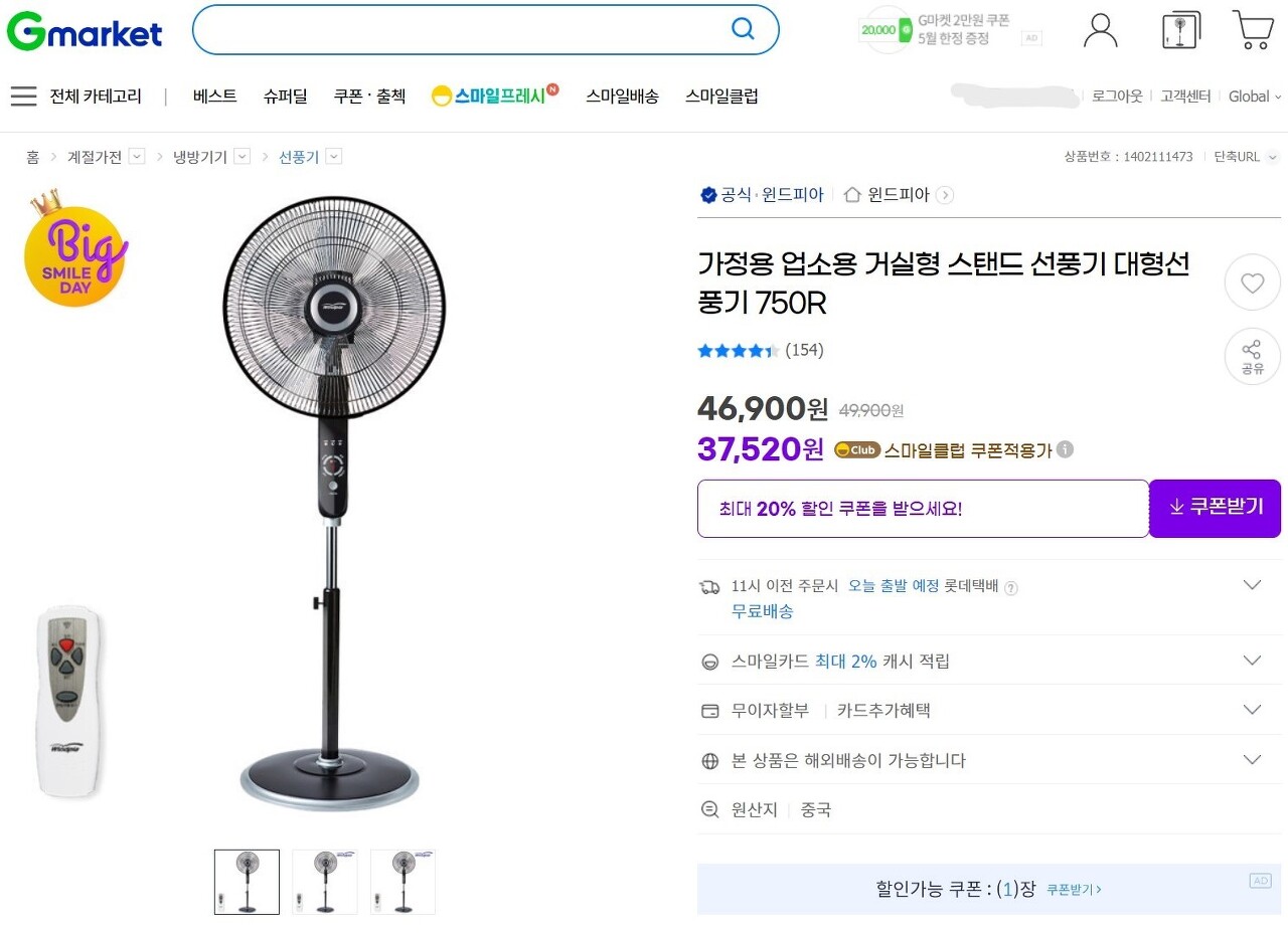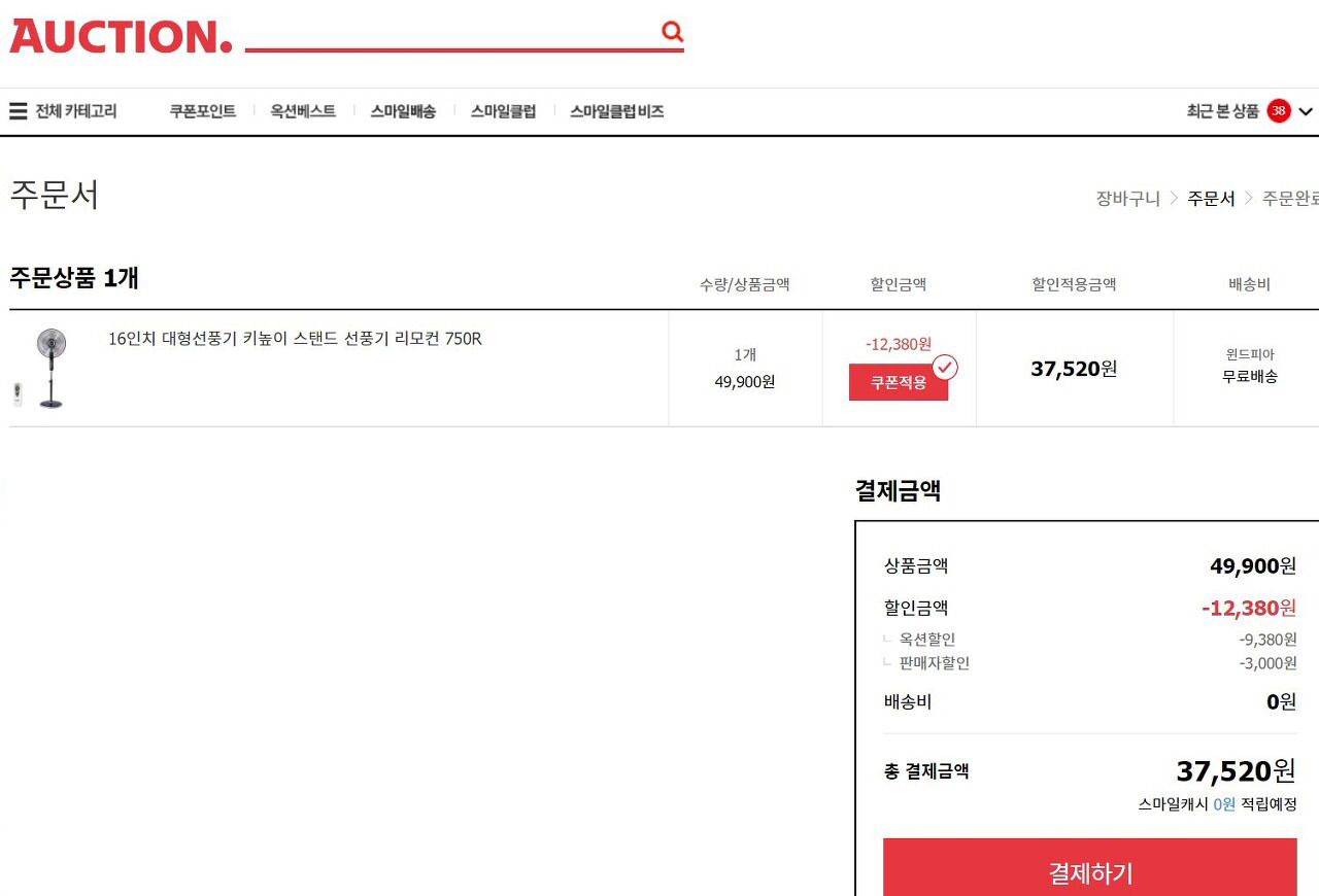 내가 구입한 선풍기 비용은 37520원........