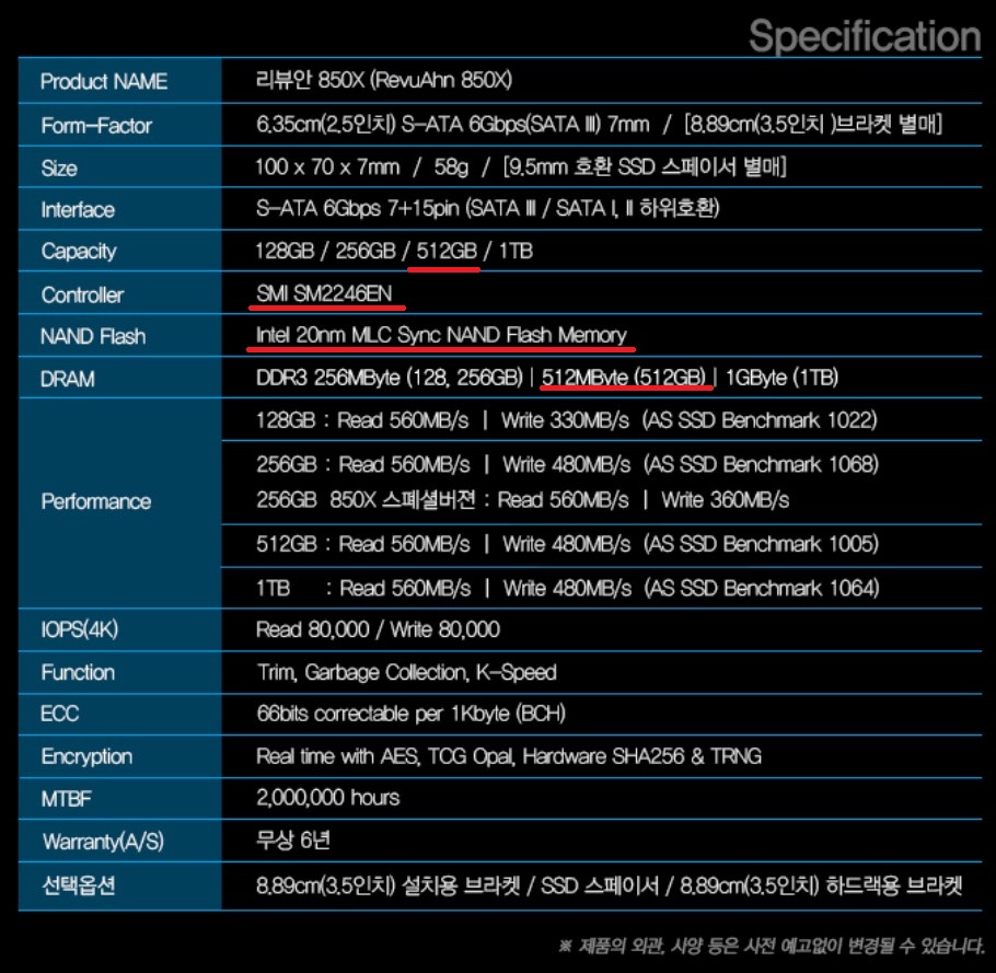 리뷰안 850X1 512G MLC SSD 펌웨어 날아가는 현상이 발생했다.
